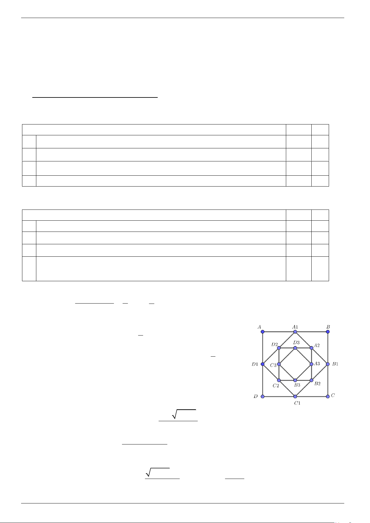 Câu 3: Từ hình vuông đầu tiên có cạnh bằng 2 , nối các trung điểm bốn