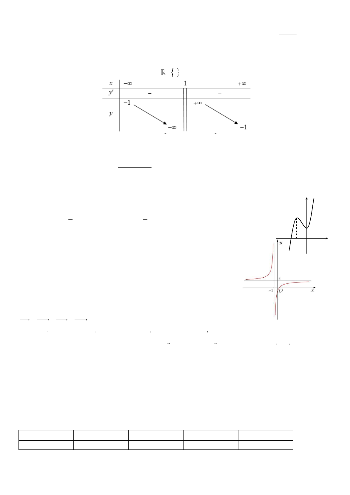 1 và có bảng biến thiên như sau