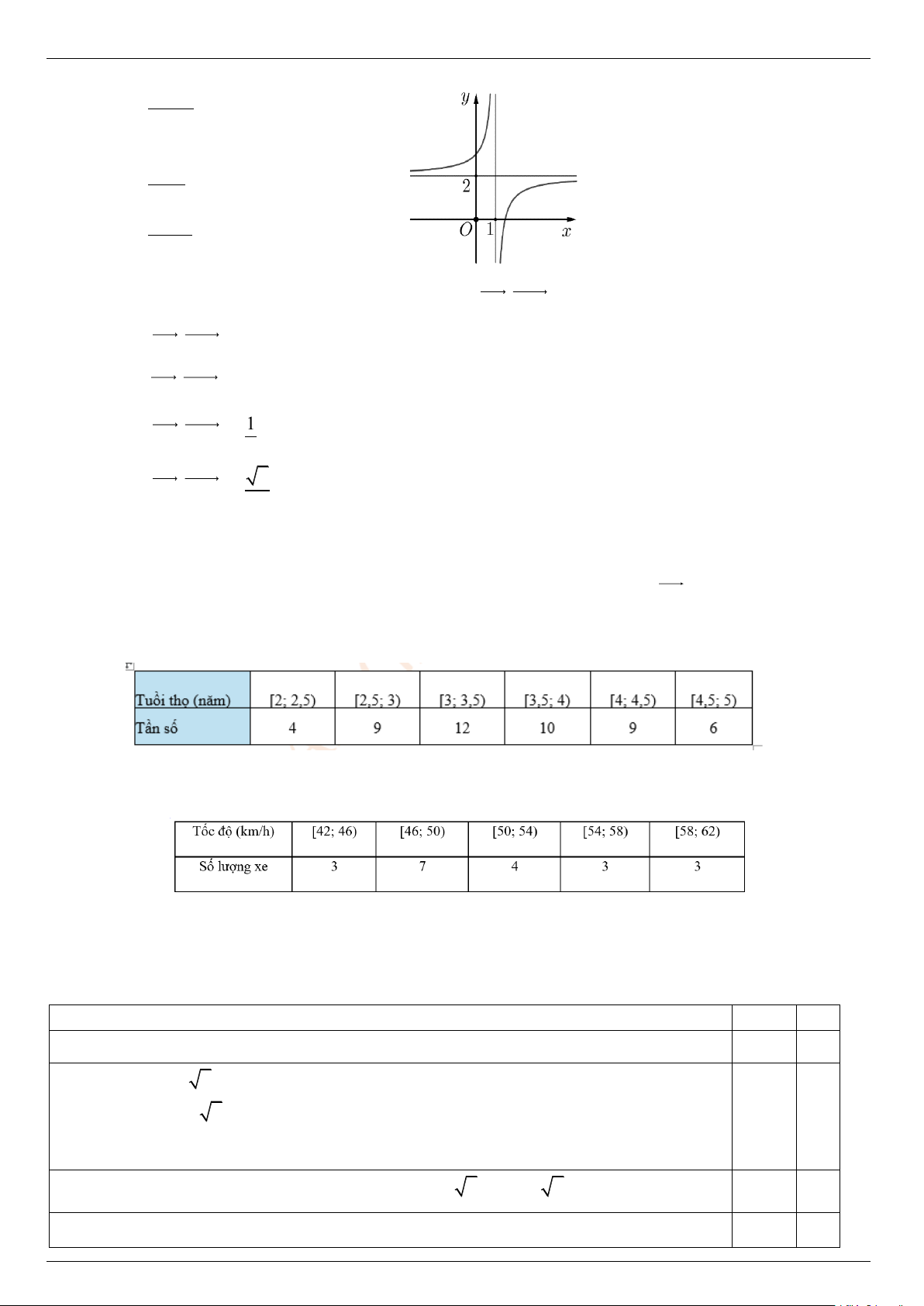 Câu 12. Tốc độ của 20 xe hơi khi đi qua một trạm kiểm tra tốc độ (đơn vị: km/h) được thống kê lại như sau: