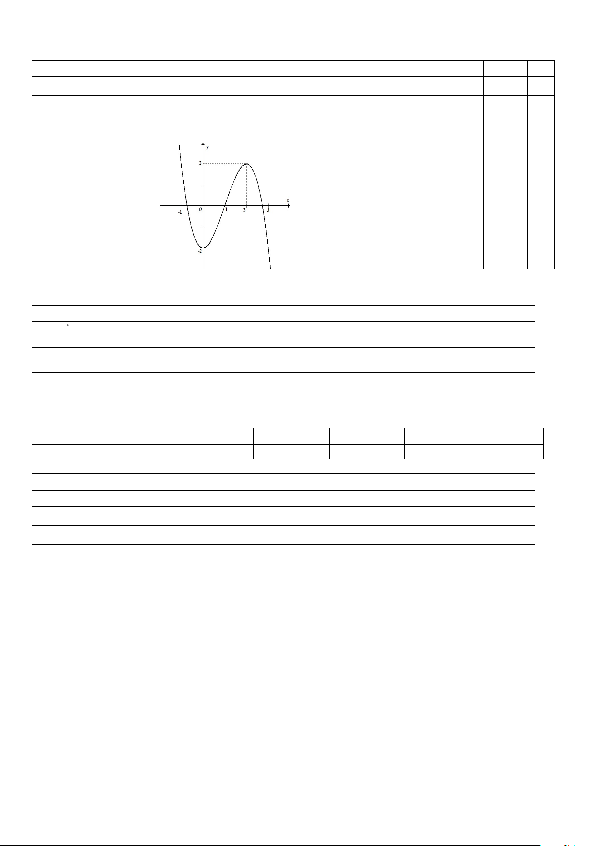 Câu 2. Hàm số y = f (x) xác định trên và có bảng biến thiên như