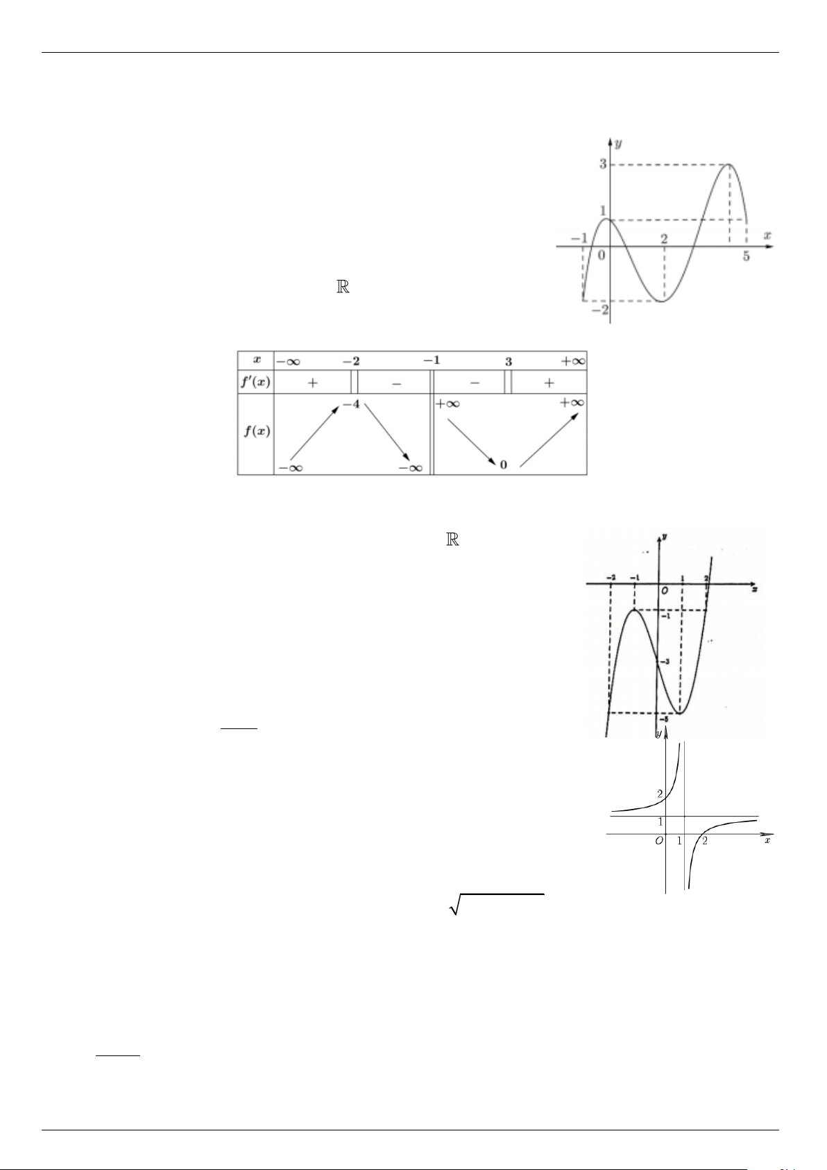 Câu 3. Cho hàm số y = f (x) xác định và liên tục trên có đồ thị như