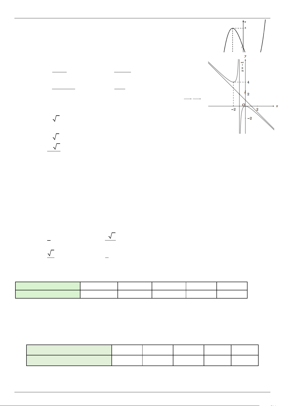 Câu 2. Cho hàm số y = f (x) có bảng biến thiên như hình vẽ dưới đây.