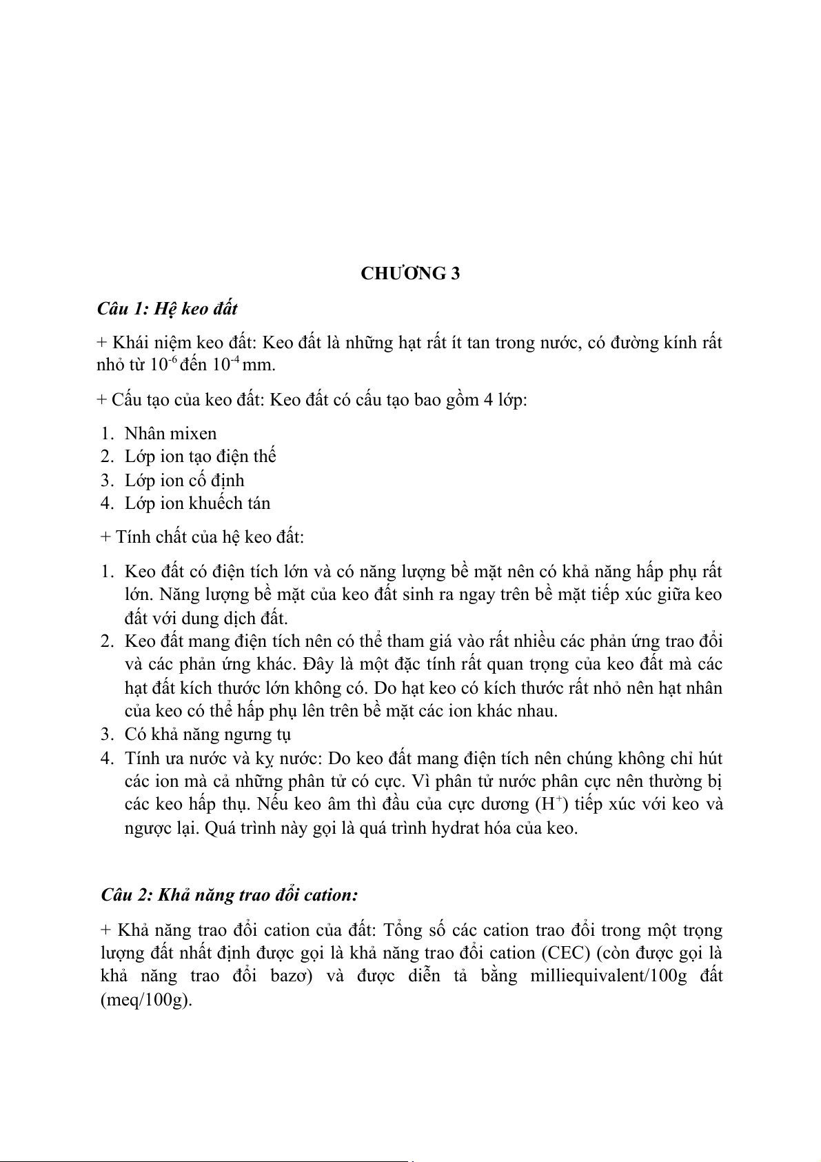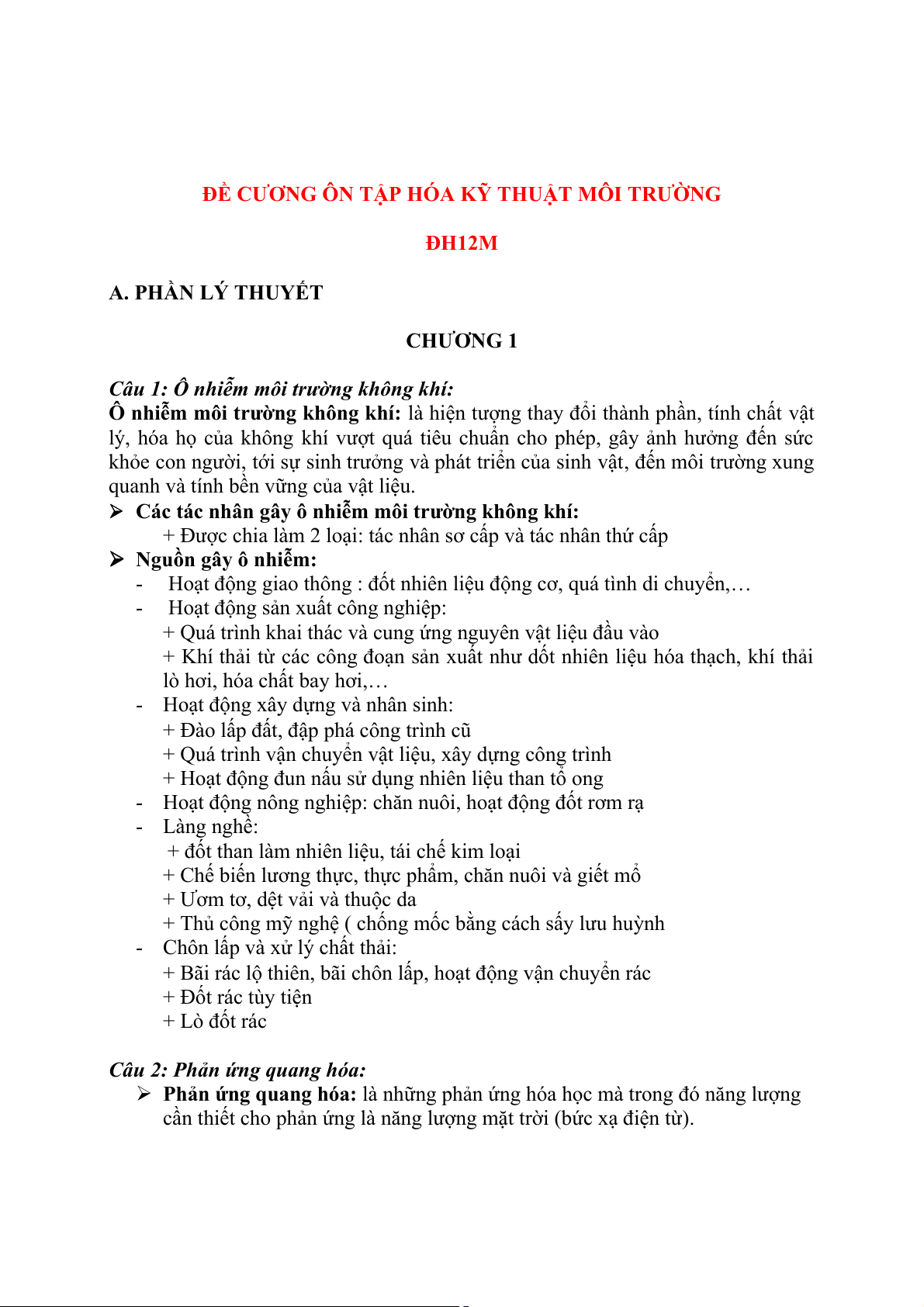 ĐỀ CƯƠNG ÔN TẬP HÓA KỸ THUẬT MÔI TRƯỜNG ĐH12M A. PHẦN LÝ THUYẾT CHƯƠNG 1