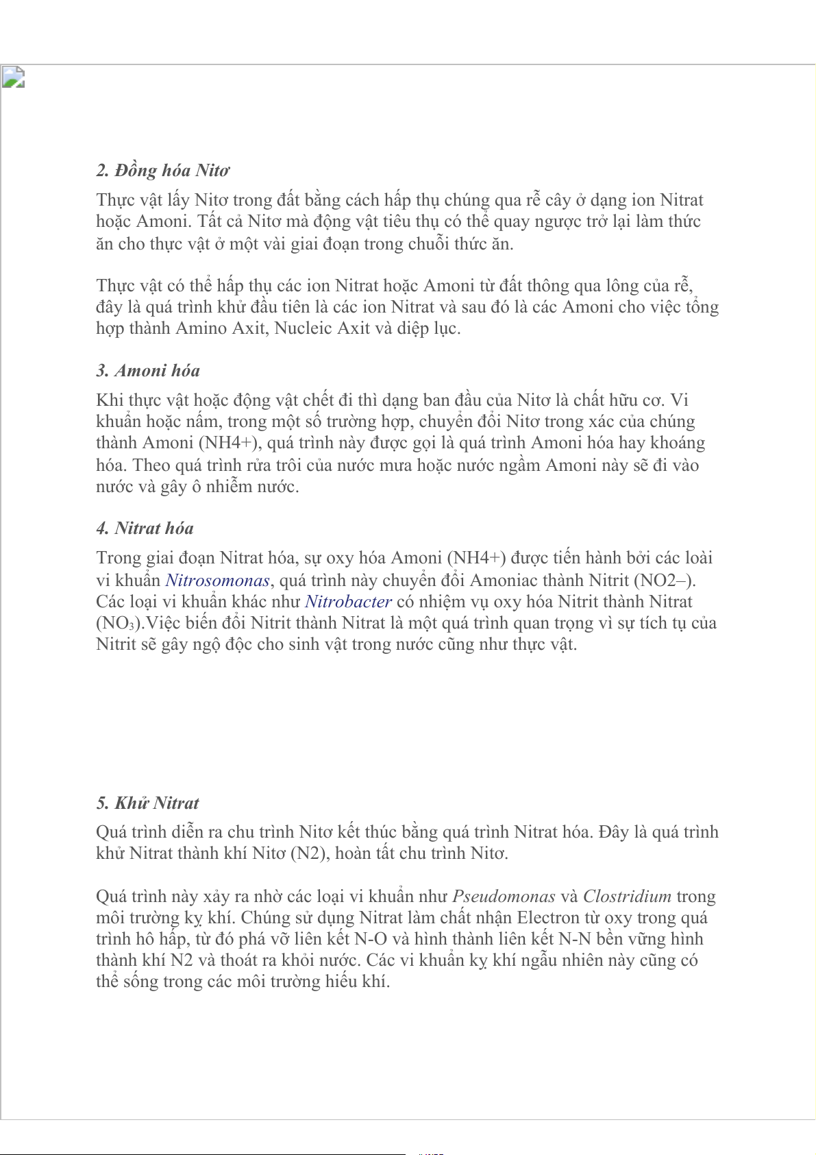 Nitrit sẽ gây ngộ độc cho sinh vật trong nước cũng như thực vật. 5. Khử Nitrat