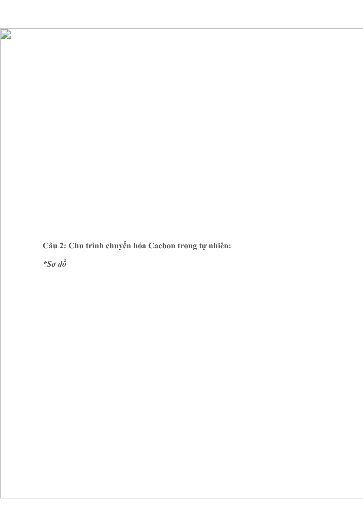 Câu 2: Chu trình chuyển hóa Cacbon trong tự nhiên: *Sơ đồ