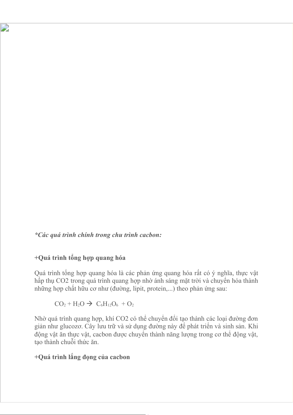 *Các quá trình chính trong chu trình cacbon: