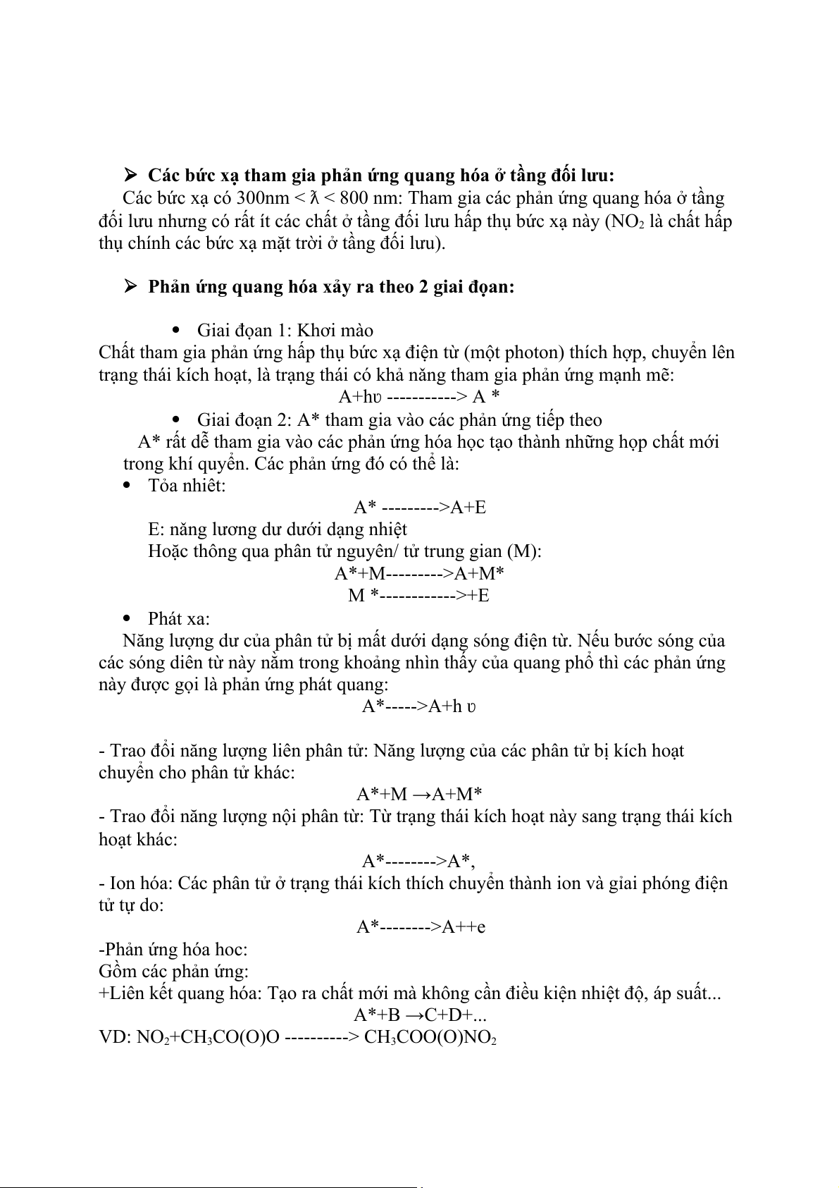 trong khí quyển. Các phản ứng đó có thể là: Tỏa nhiêt: A* --------->A+E