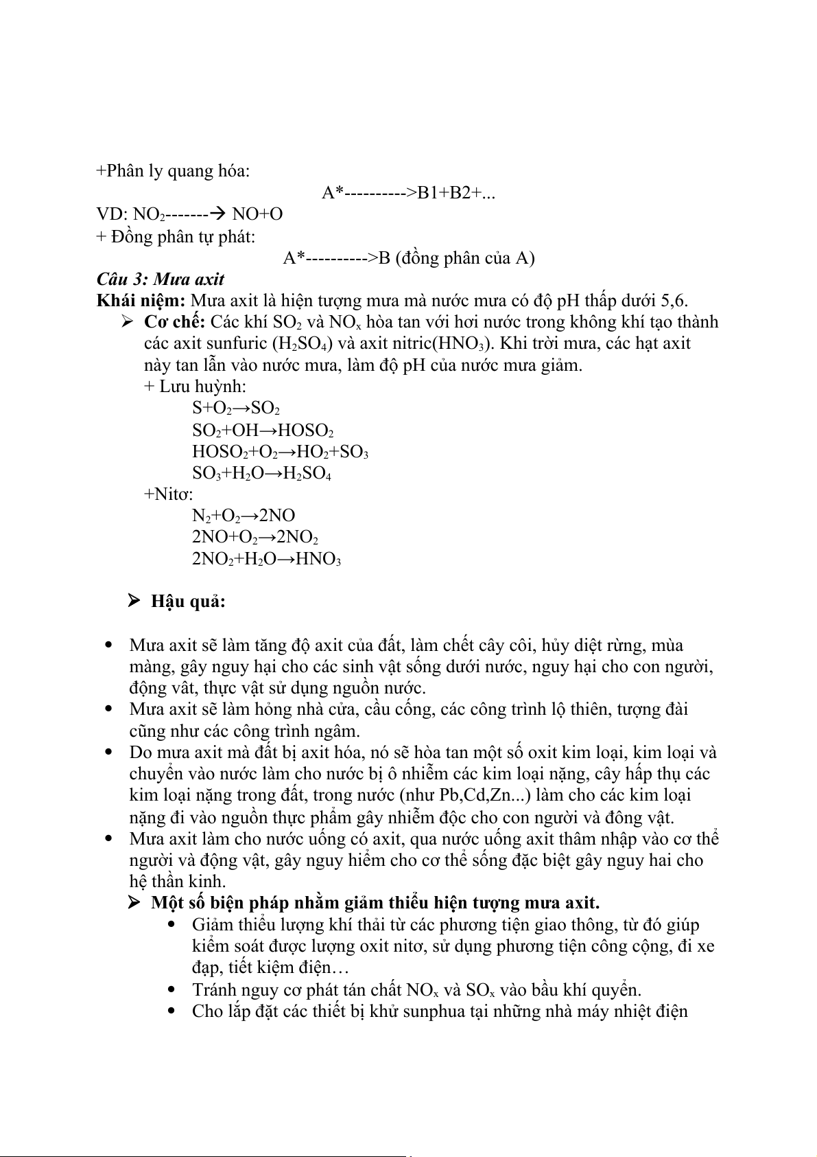 A*---------->B (đồng phân của A) Câu 3: Mưa axit