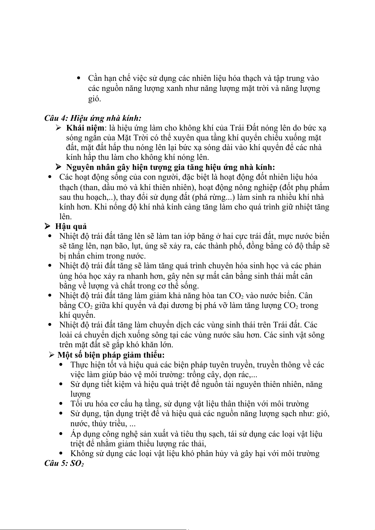 Câu 1: Ô nhiễm môi trường không khí: