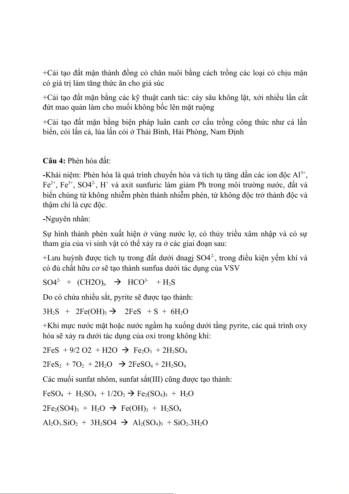 Câu 4: Phèn hóa đất: