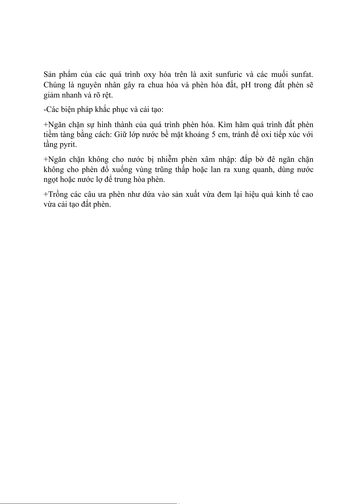 tiềm tàng bằng cách: Giữ lớp nước bề mặt khoảng 5 cm, tránh để oxi tiếp xúc với tầng pyrit.