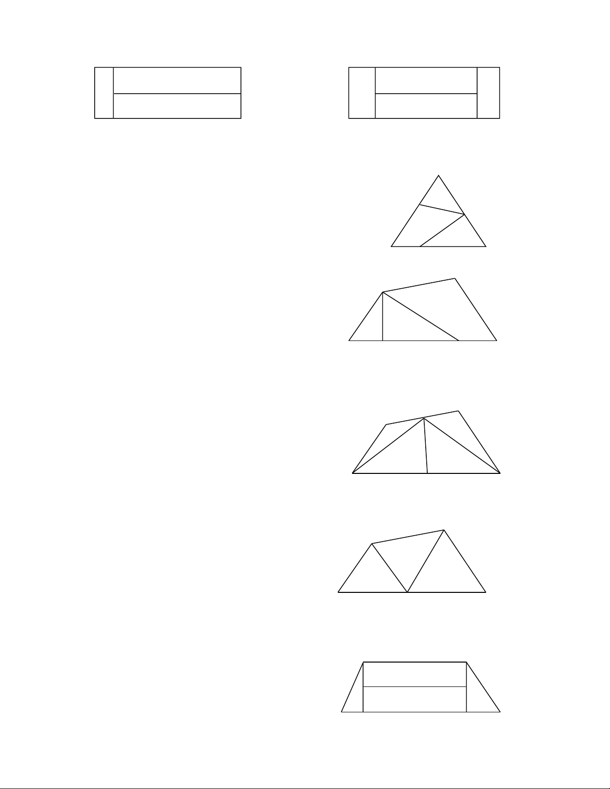c) Kẻ thêm một đoạn thẳng để hình bên có 1 hình chữ nhật, 1 hình tam giác và 2 hình tứ giác