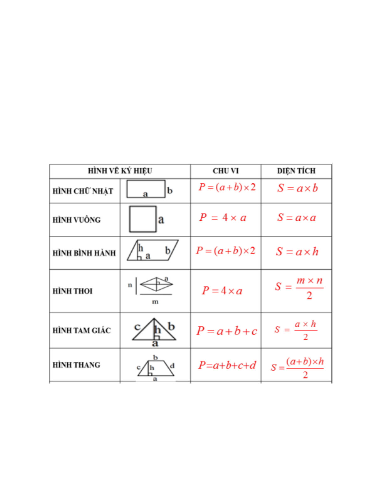 5m. d/ Hình thoi có cạnh 5dm, độ dài hai đường chéo là 60cm và 80cm
