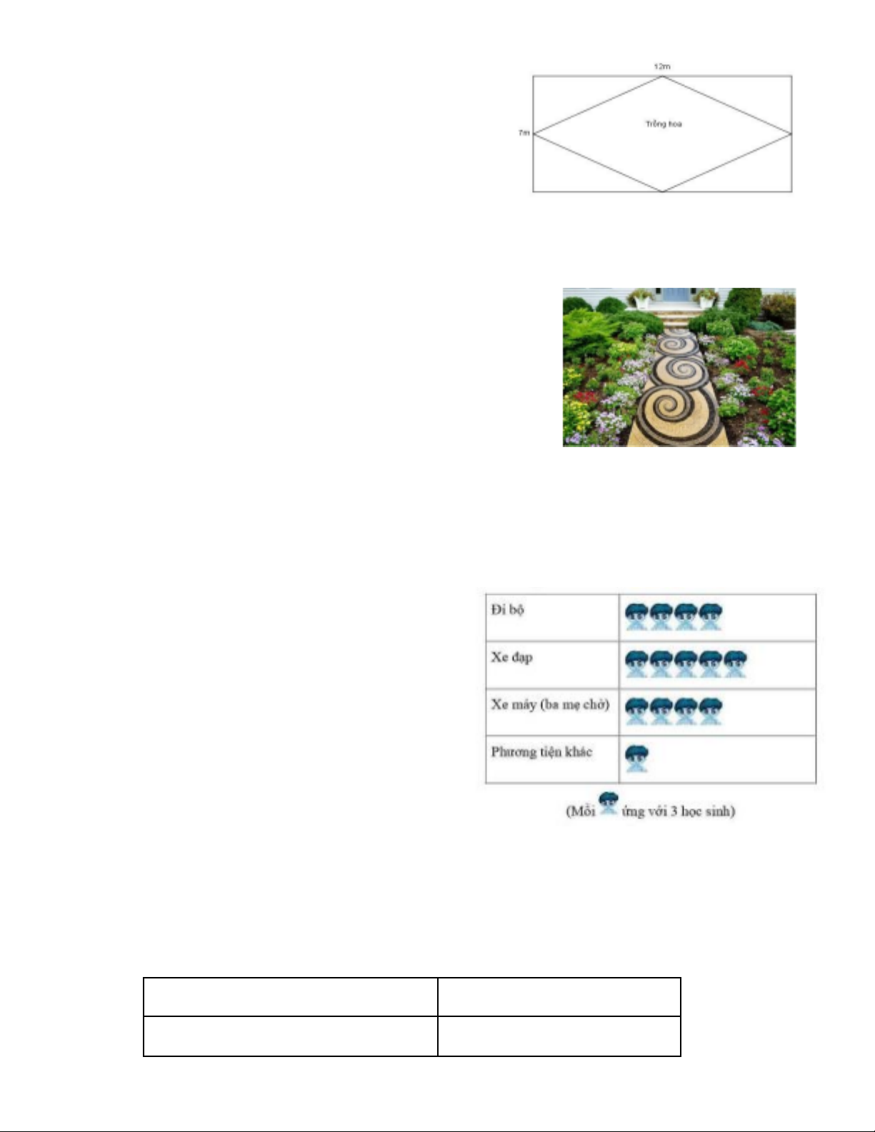 thoi để trồng hoa (như hình vẽ). Tính diện tích phần đất còn lại.