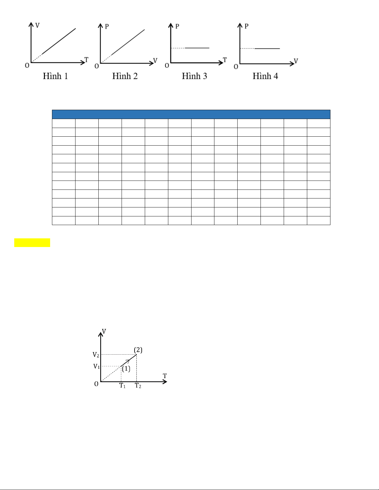 Câu 21. Trong hệ toạ độ V - T, đường biểu diễn nào sau đây là đường đẳng áp?