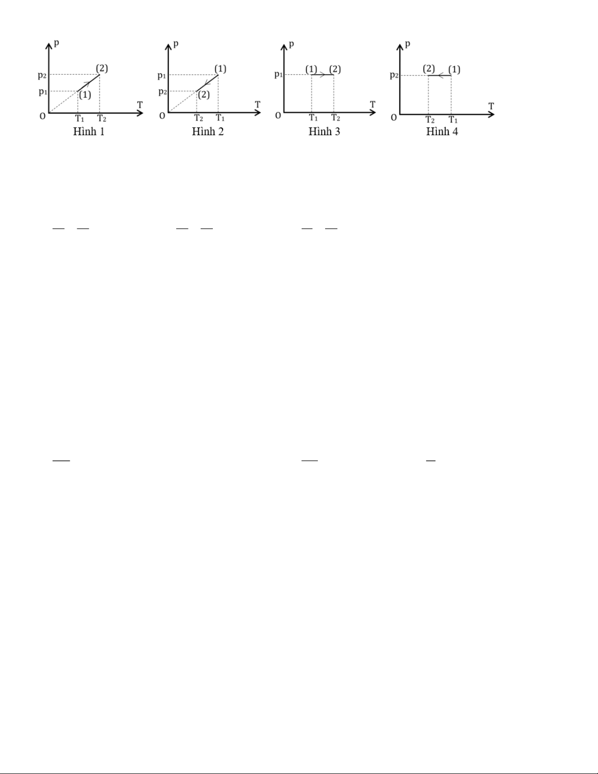 Câu 20. Một khối khí xác định biến đổi từ trạng thái (1) sang trạng thái (2) được biểu diễn trên hệ tọa độ p – T như