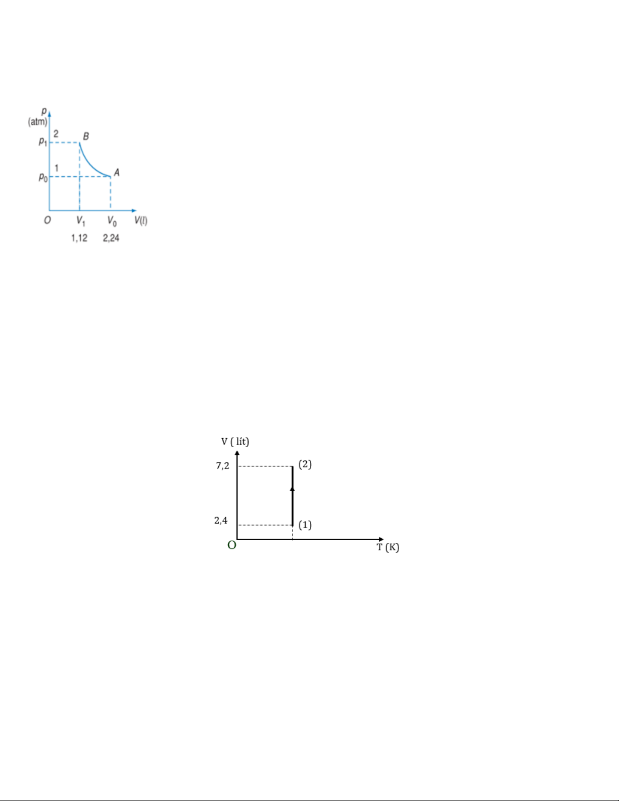 Câu 12. Một khối khí khi đặt ở điều kiện tiêu chuẩn (trạng thái A). Nén khí và giữ nhiệt độ không đổi đến trạng thái B.