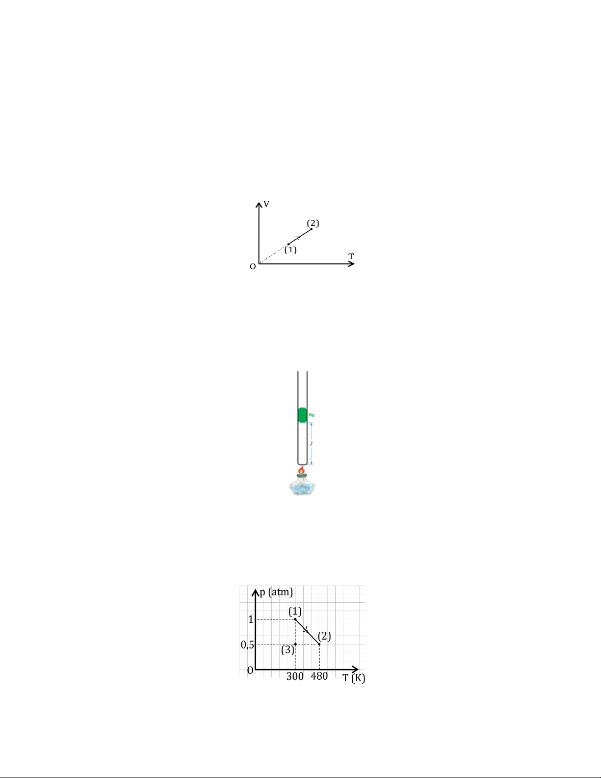 Câu 18. Một khối khí xác định biến đổi từ trạng thái (1) sang trạng thái (2) được biểu diễn trên hệ tọa độ V – T như