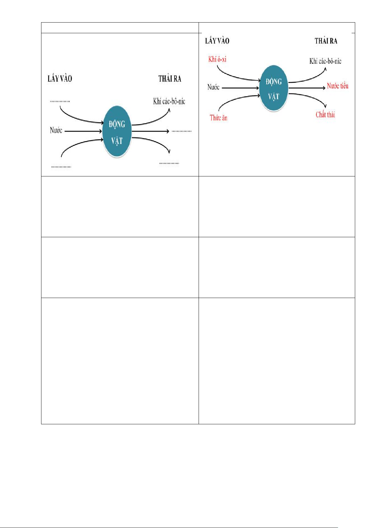 đổi khí, nước, thức ăn giữa động vật với