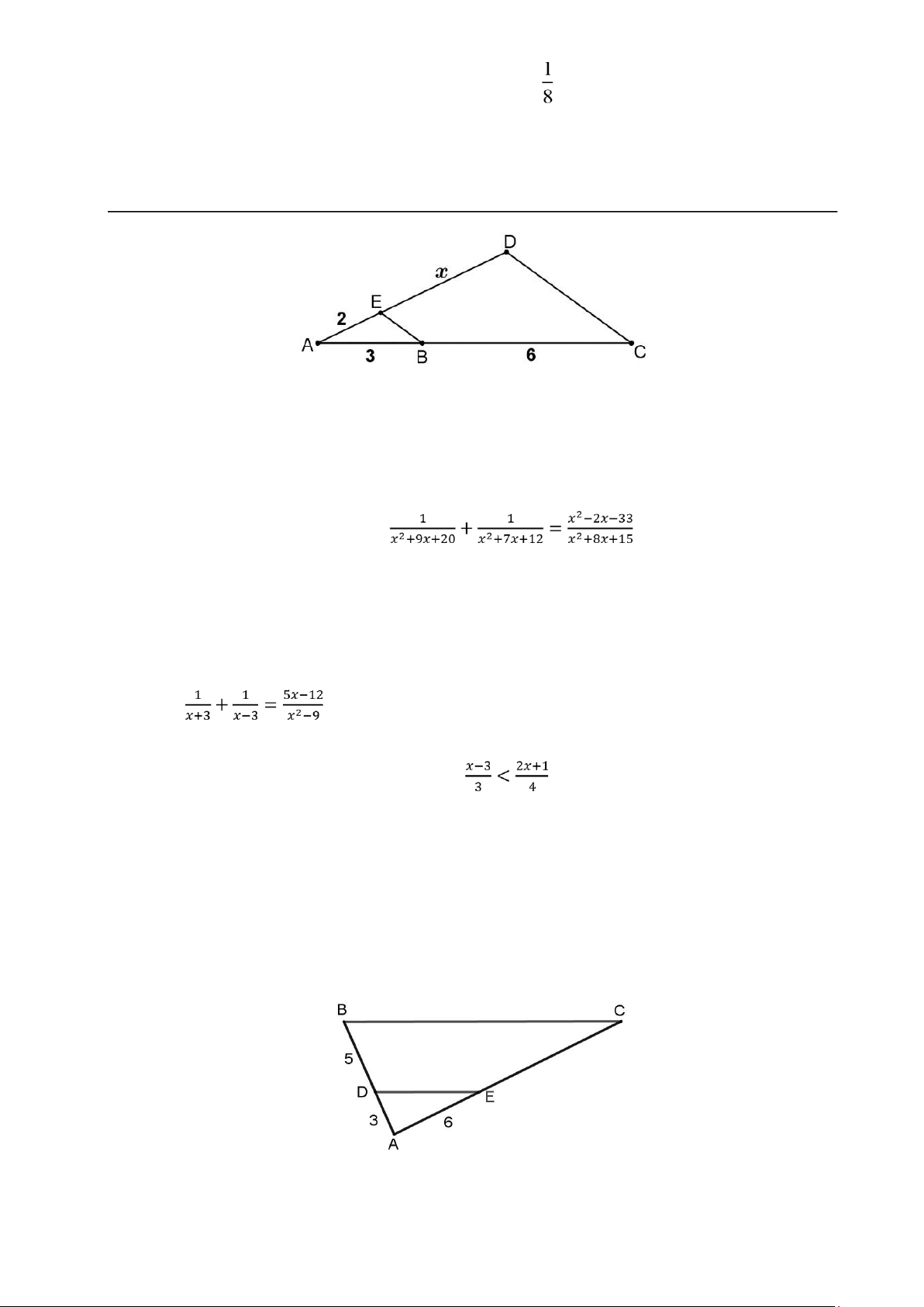 Bài 4 (1,0 điểm): Cho hình vẽ, biết BE // CD. Tính độ dài 𝑥.