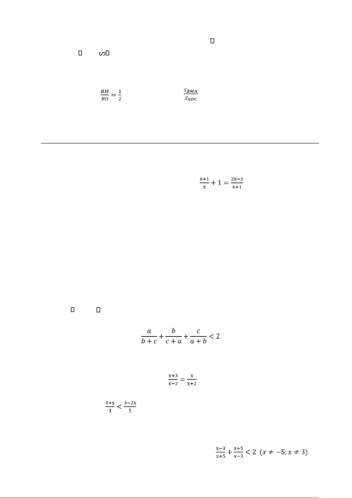 Bài 1 (3 điểm): Giải các phương trình sau:    a) 5𝑥 +3 = 0;  b) (𝑥 +3)(2𝑥–1) = 0;    c)  ;  d) |7𝑥| = 8𝑥 +1.