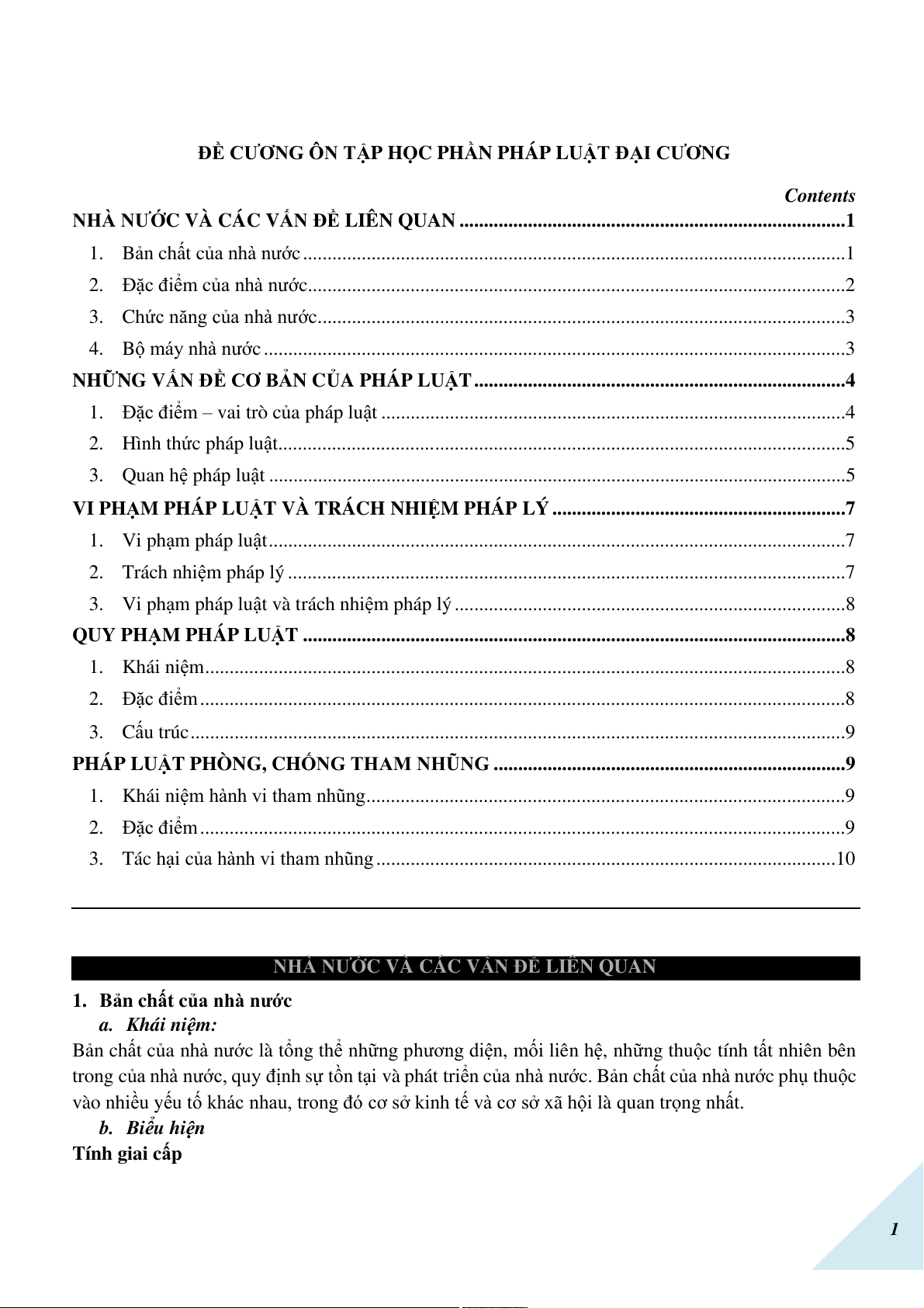 1. Bản chất của nhà nước . . . . . . . . . . . . . . . . . . . . . . . . . . . . . . . . . . . . . . . . . . . . . . . . . . . . . . . .1
