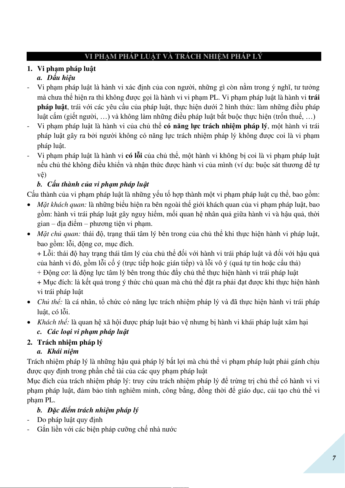 VI PHẠM PHÁP LUẬT VÀ TRÁCH NHIỆM PHÁP LÝ . . . . . . . . . . . . . . . . . . . . . . . . . . . . . . 7