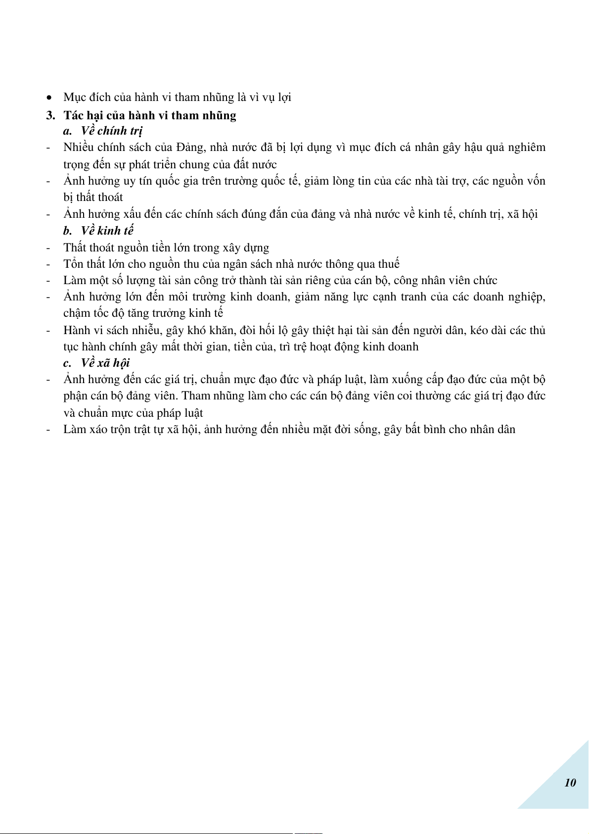 3. Tác hại của hành vi tham nhũng . . . . . . . . . . . . . . . . . . . . . . . . . . . . . . . . . . . . . . . . . . . . . . . 10