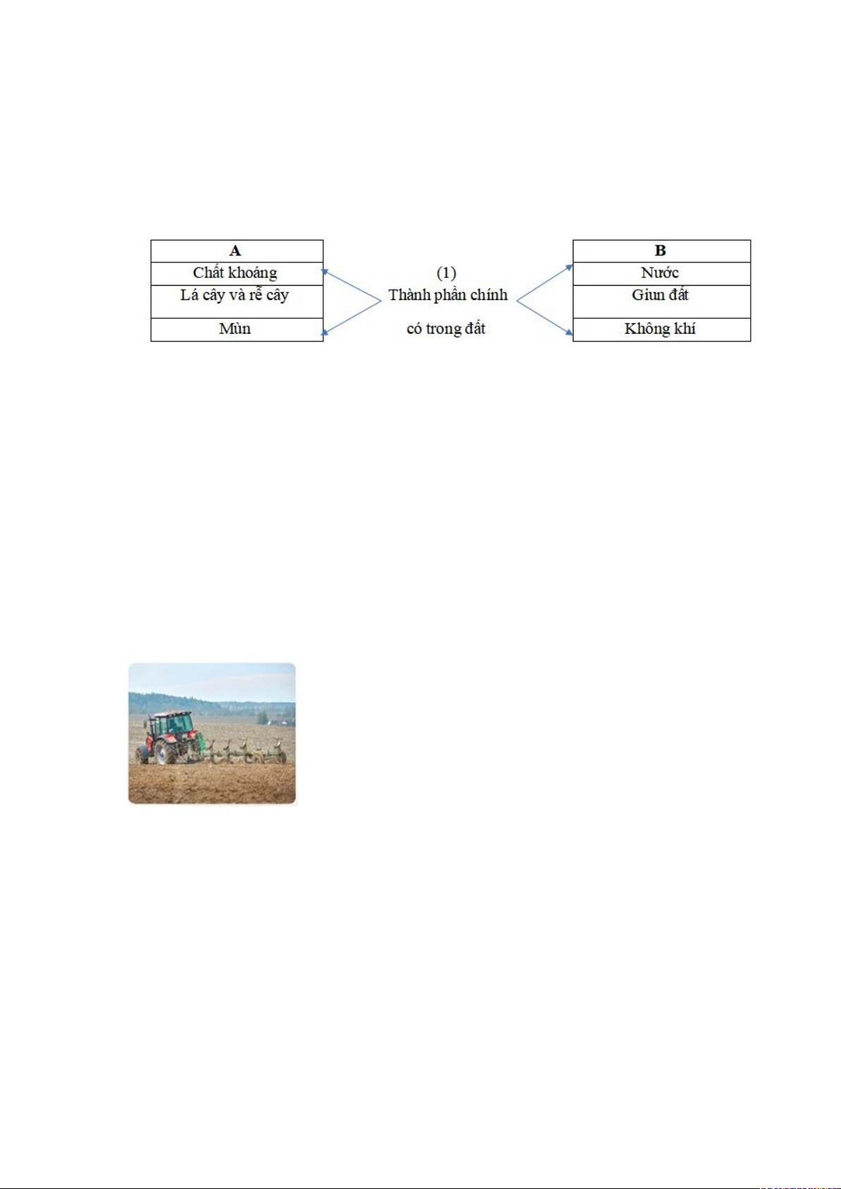 Câu 4. Hoạt động diễn ra trong hình dưới đây làm thay đổi thành phần nào của đất?