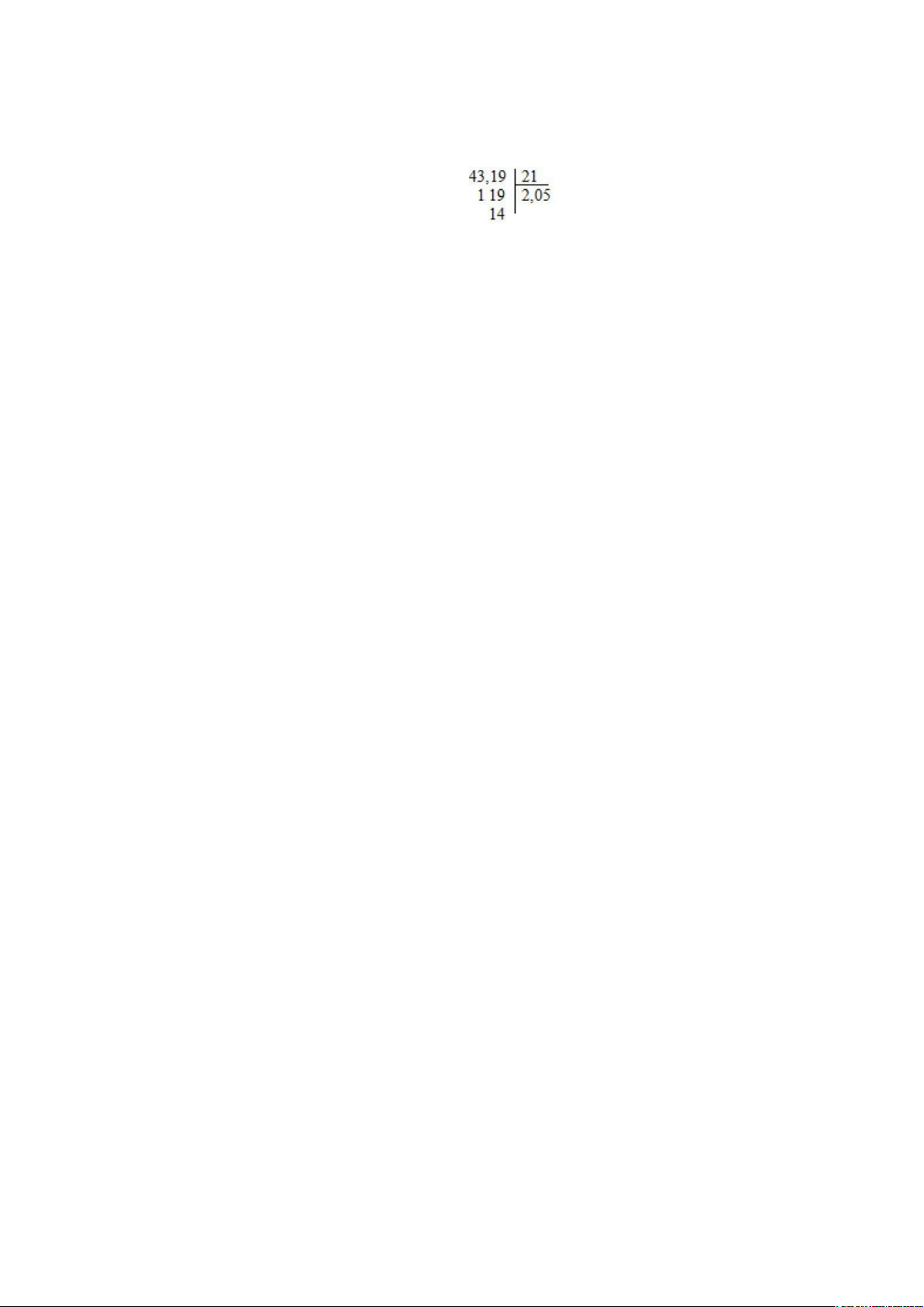 Phép chia có thương là 2,05; số dư là 0,014 ………..