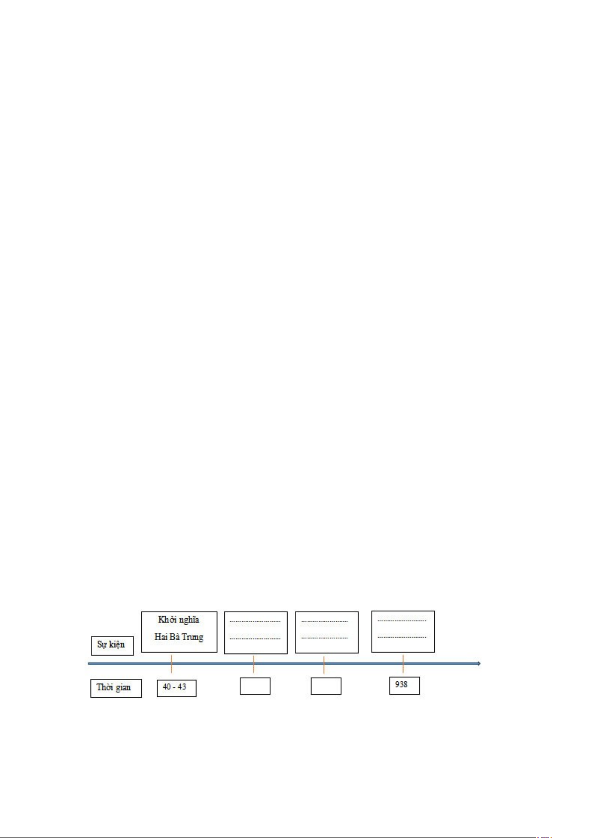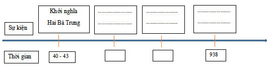 Câu 8: (M2) Điền tên sự kiện và mốc thời gian tương ứng để hoàn thiện trục thời gian về một số cuộc đấu tranh tiêu biểu trong thời kì Bắc thuộc. (1đ)