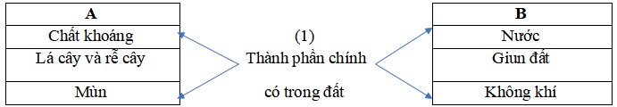 Câu 1 . Nối nội dung (1) với cột A và B chỉ thành phần chính của đất.
