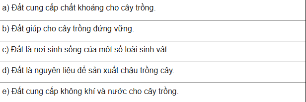 Câu 8. Viết vào chữ Đ trước câu đúng, chữ S trước câu sai liên quan đến vai trò của đất đối với cây trồng.