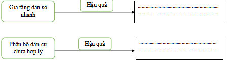 Câu 10: (M2) Hoàn thành sơ đồ dưới đây về hậu quả do gia tăng dân số nhanh và phân bố dân cư chưa hợp lý ở Việt Nam. (1đ)