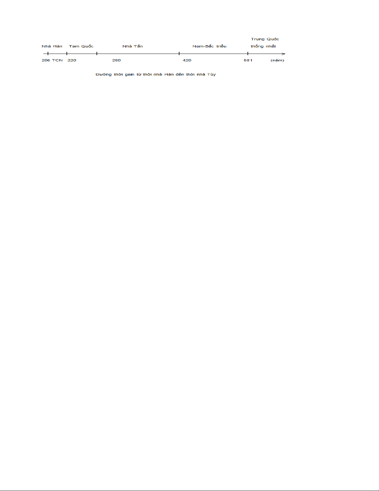 Câu 12: Vẽ trục thời gian các giai đoạn phát triển của Trung Quốc từ thời nhà Hán đến thời nhà Tuỳ.