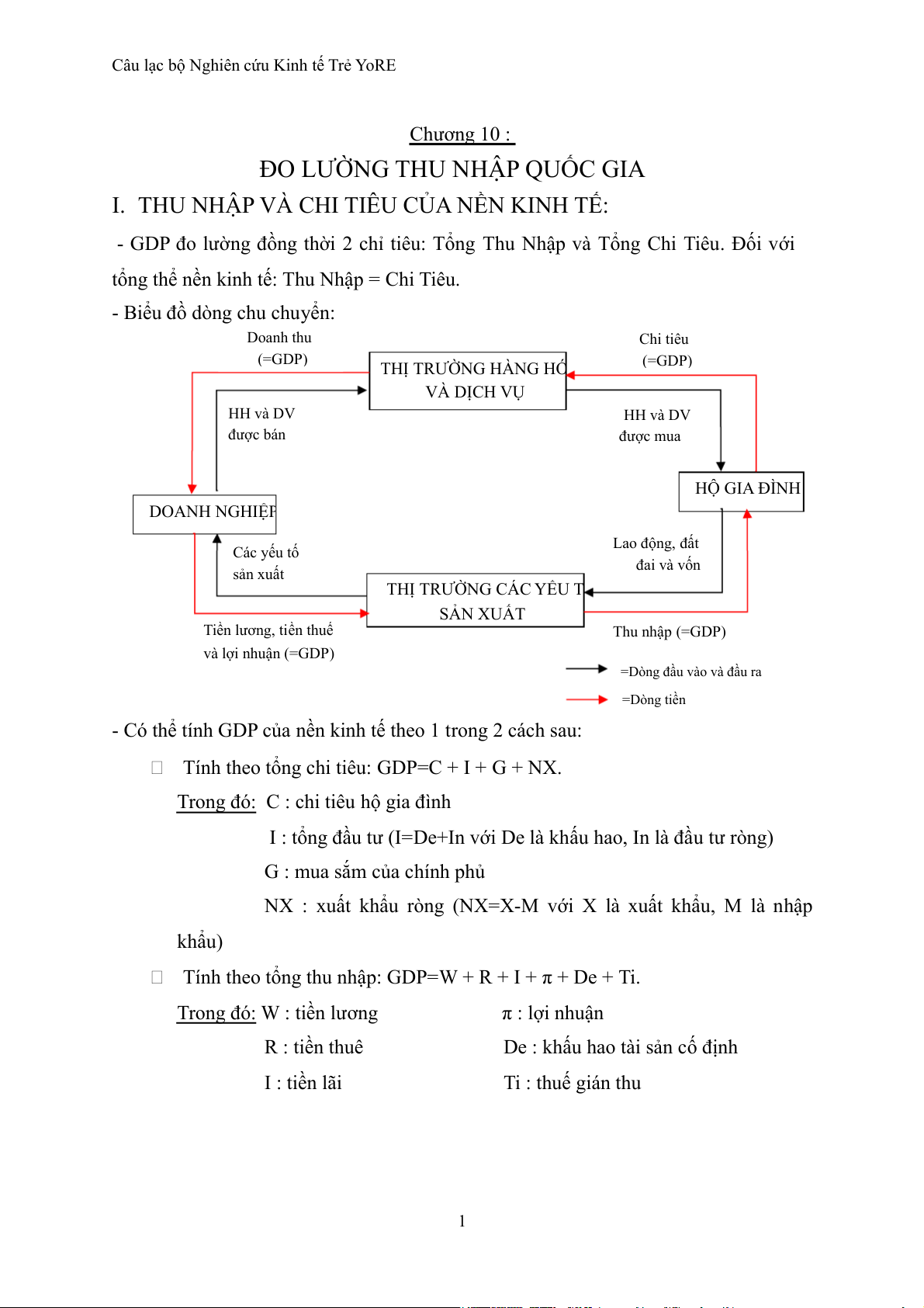 - Biểu đồ dòng chu chuyển: Doanh thu Chi tiêu (=GDP) THỊ TRƯỜNG HÀNG HÓ (=GDP) VÀ DỊCH VỤ HH và DV HH và DV được bán được mua HỘ GIA ĐÌNH DOANH NGHIỆP Lao động, đất Các yếu tố đai và vốn sản xuất THỊ TRƯỜNG CÁC YẾU T SẢN XUẤT Tiền lương, tiền thuế Thu nhập (=GDP) và lợi nhuận (=GDP)