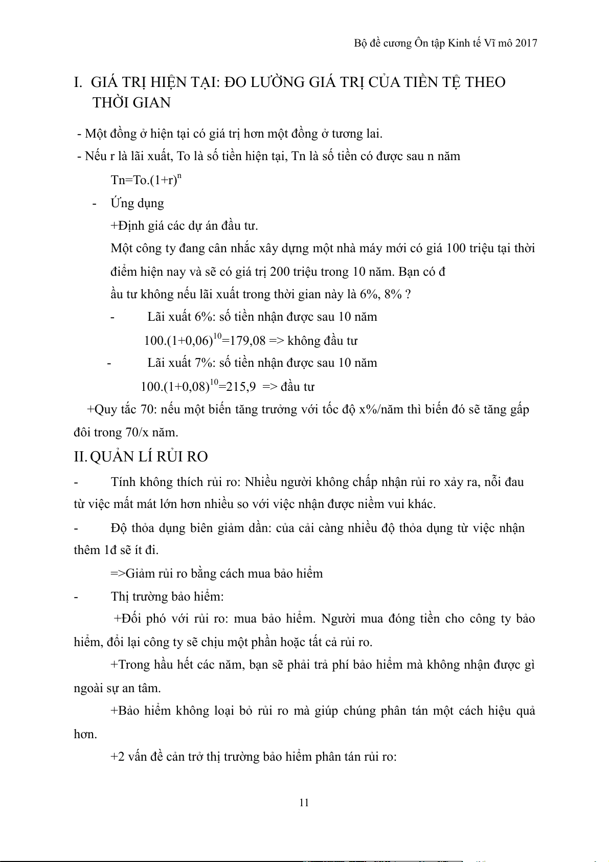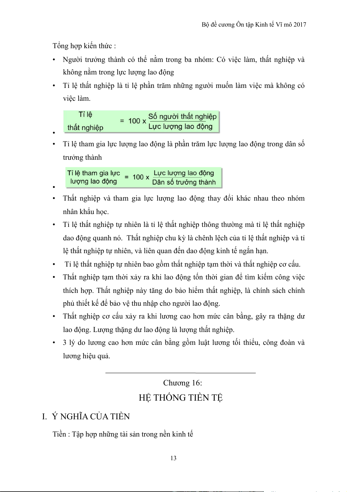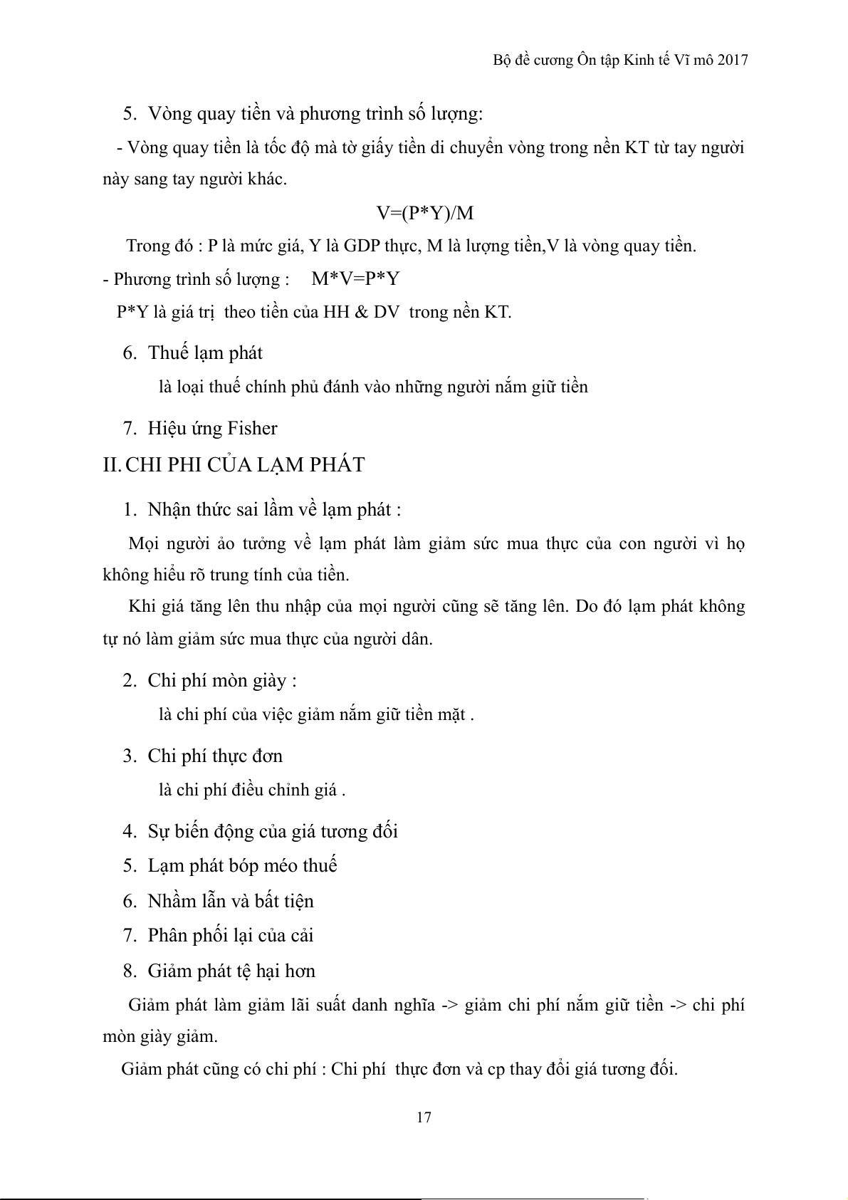 Bộ đề cương Ôn tập Kinh tế Vĩ mô 2017 hiện hành
