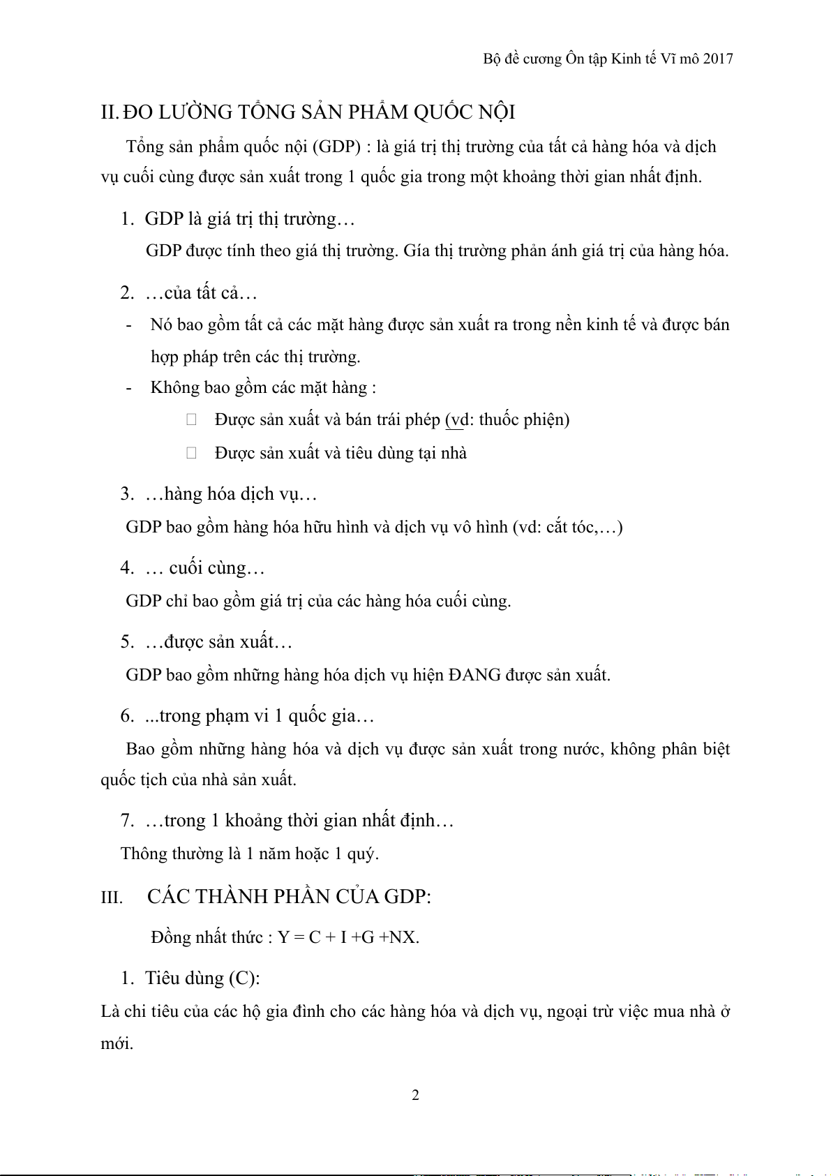 III. CÁC THÀNH PHẦN CỦA GDP: