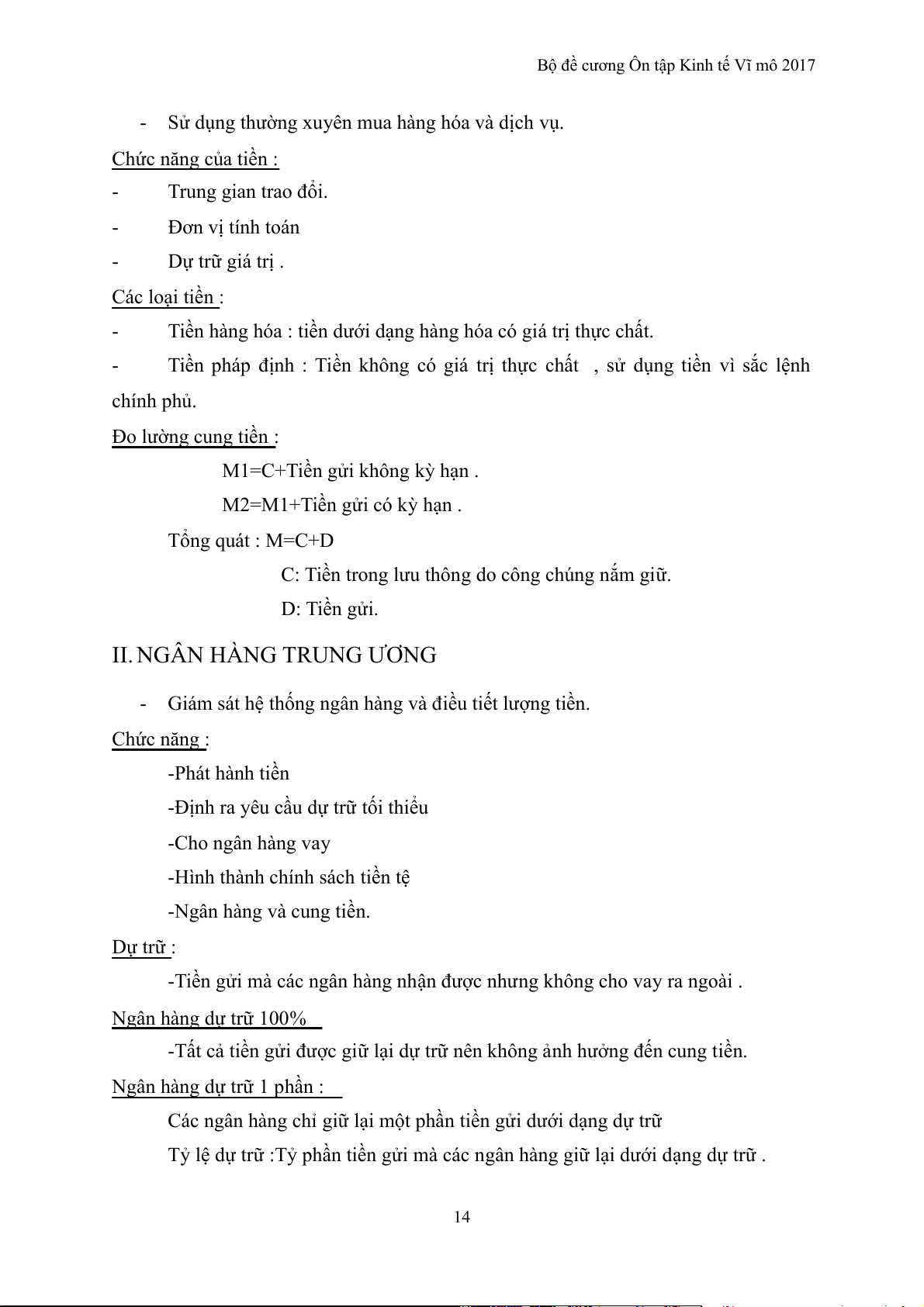 Bộ đề cương Ôn tập Kinh tế Vĩ mô 2017