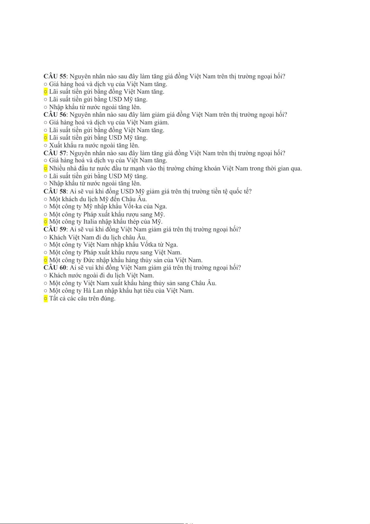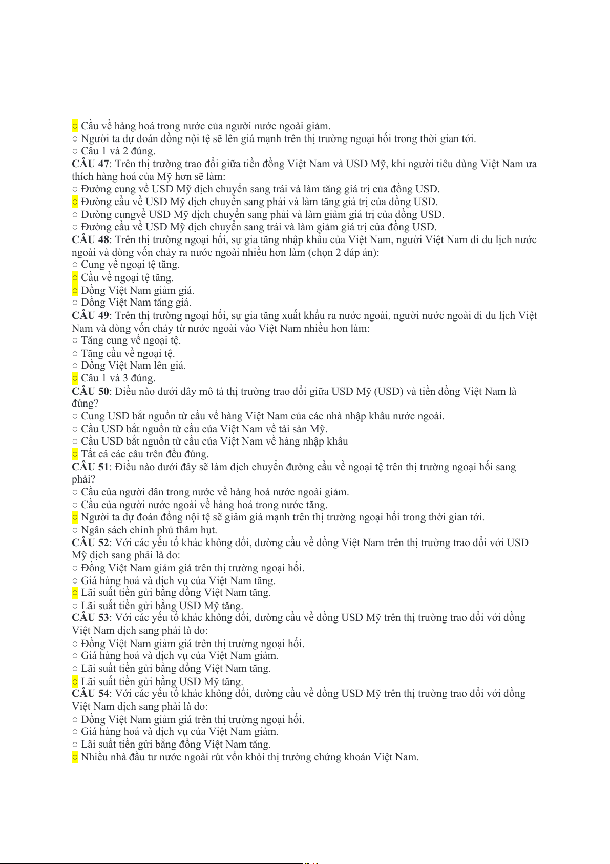 CÂU 49:Trênthịtrườngngoạihối,sựgiatăngxuấtkhẩuranướcngoài,ngườinướcngoàiđidulịchViệt