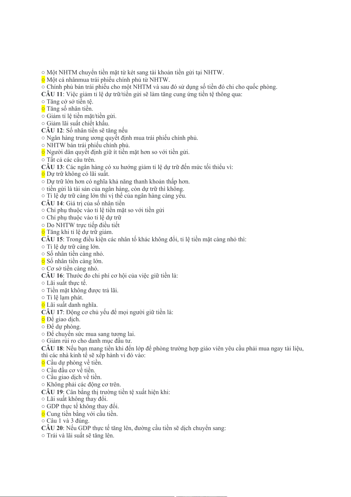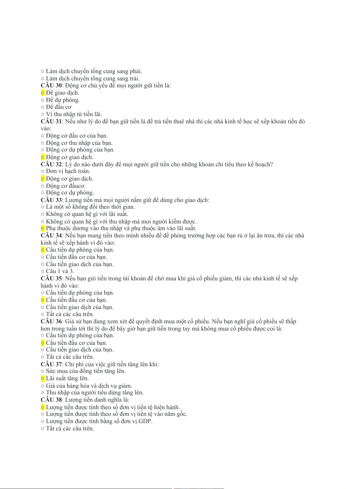 CÂU 17:Độngcơchủyếuđểmọingườigiữtiềnlà: ○Đểgiaodịch. ○Đểdựphòng.
