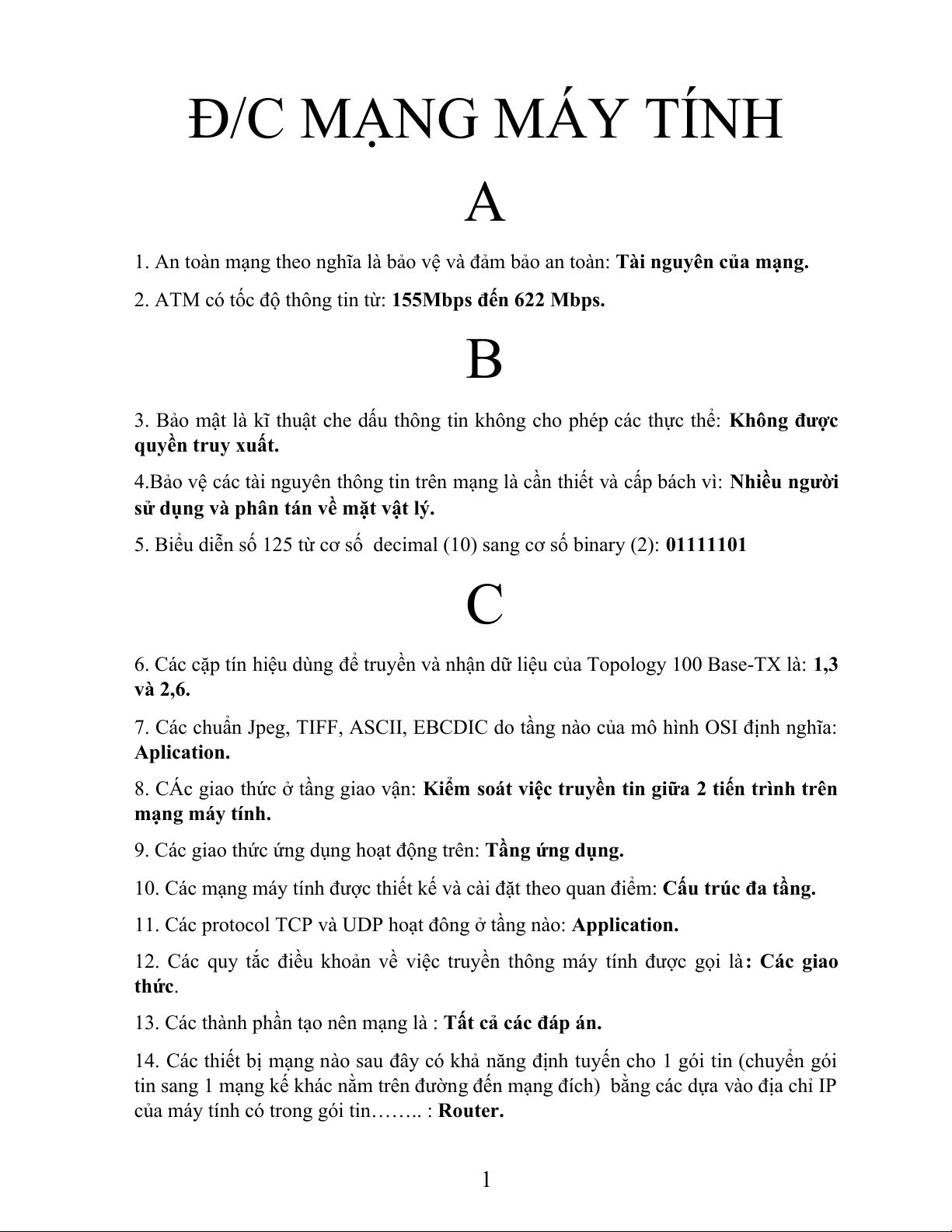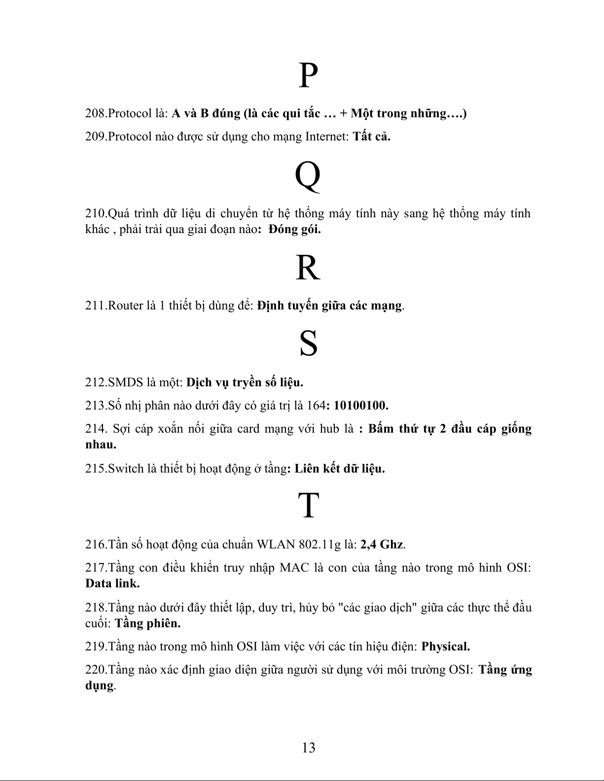 13. Các thành phần tạo nên mạng là : Tất cả các đáp án.