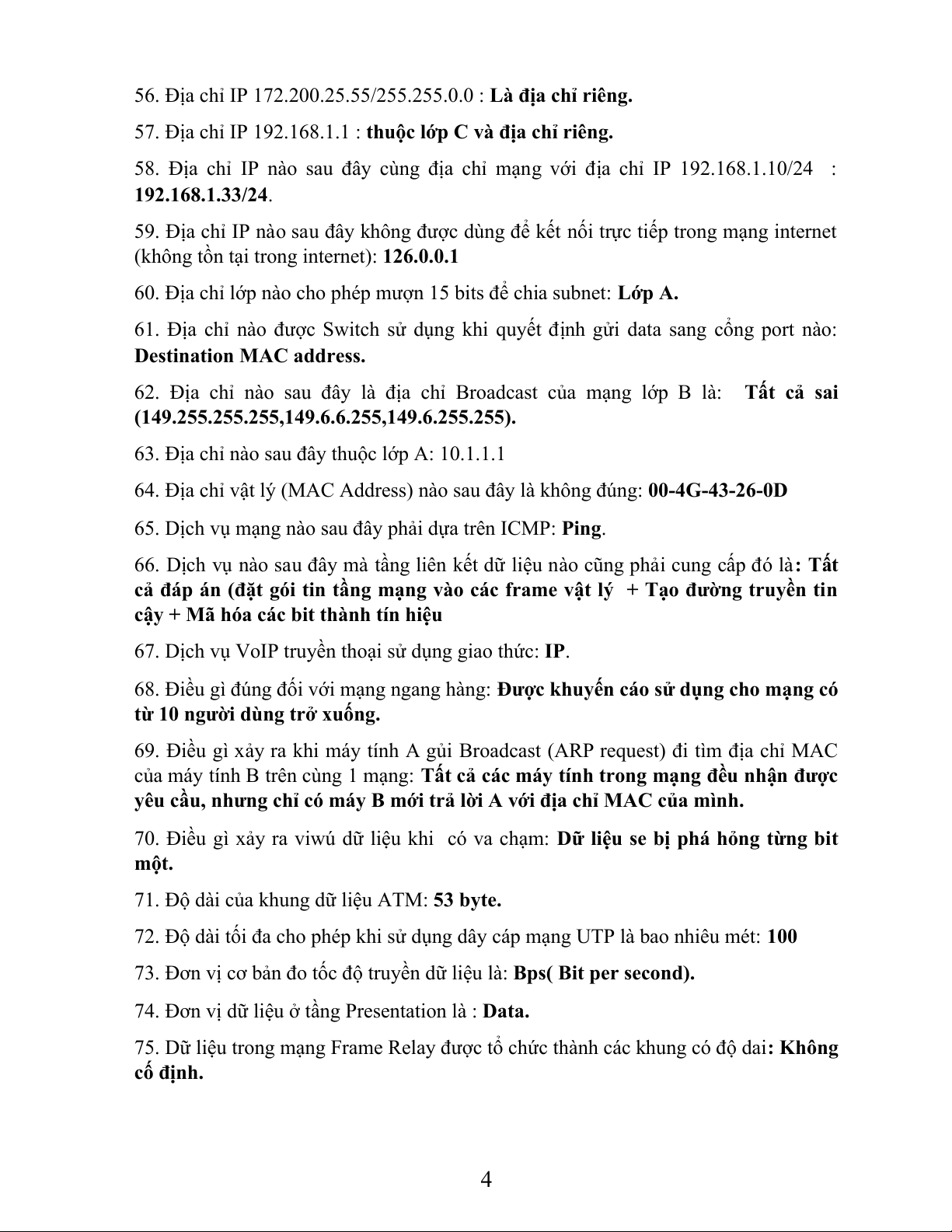 57. Địa chỉ IP 192.168.1.1 : thuộc lớp C và địa chỉ riêng.