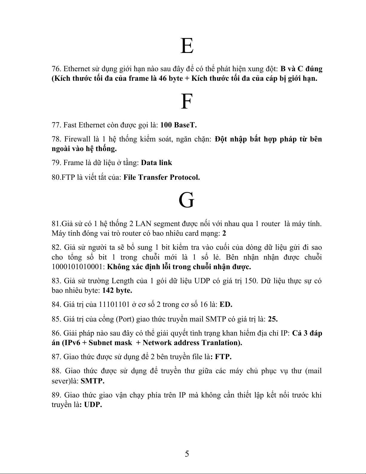 76. Ethernet sử dụng giới hạn nào sau đây để có thể phát hiện xung đột: B và C đúng