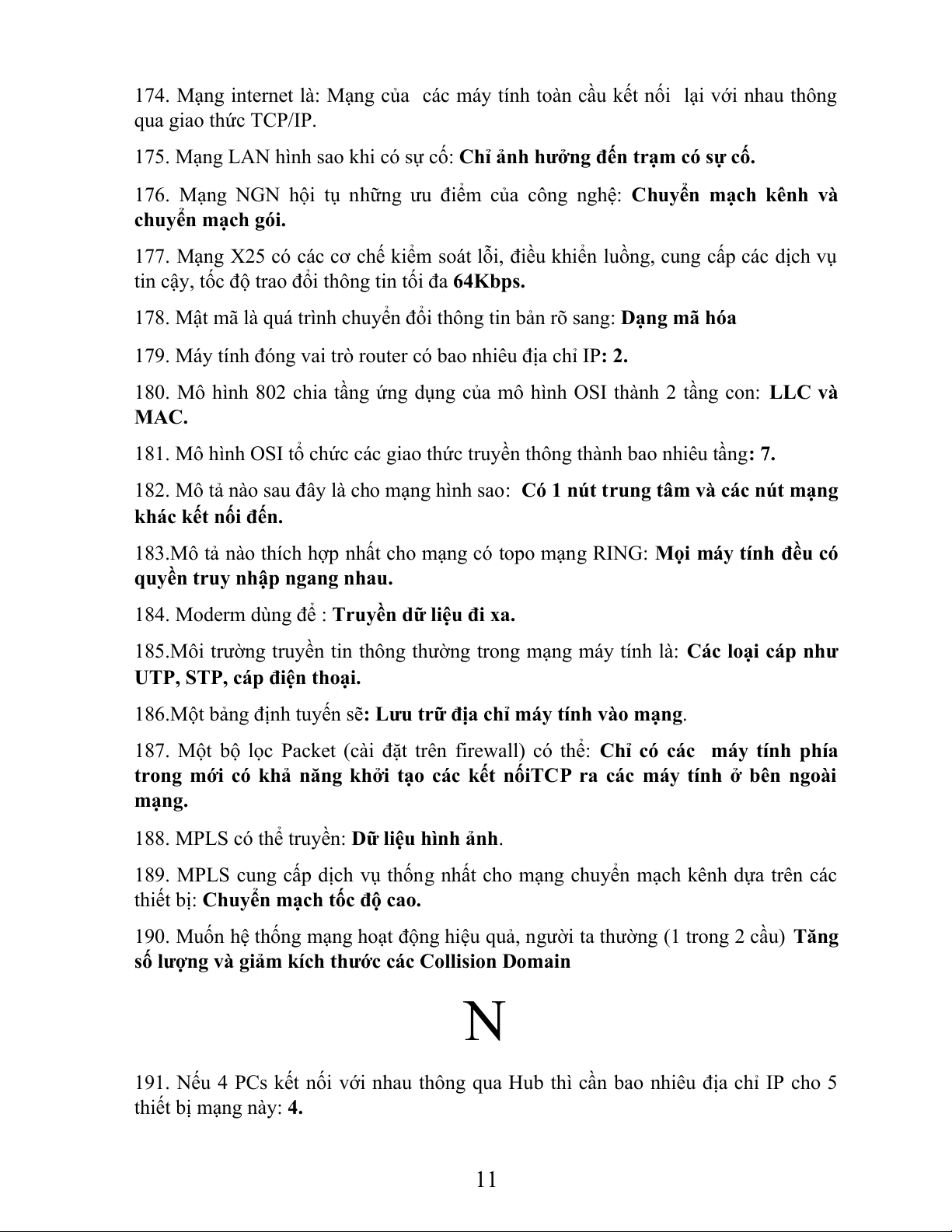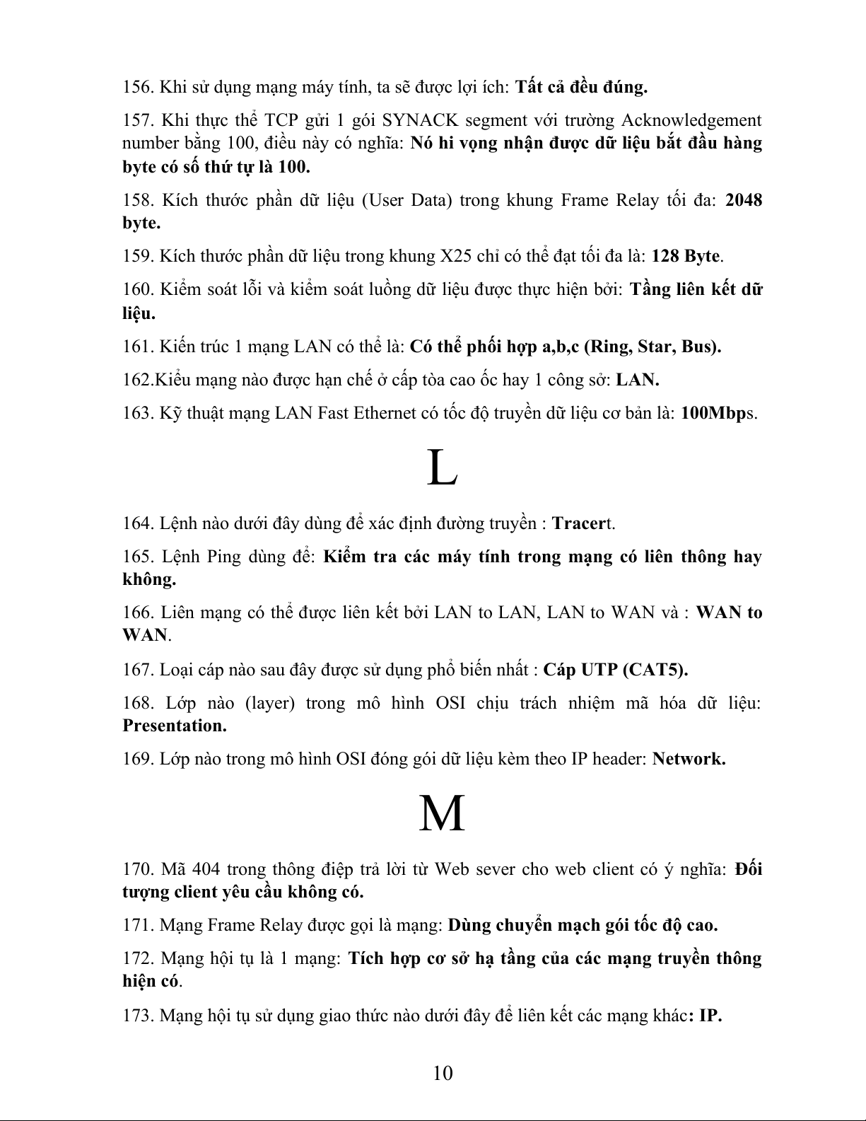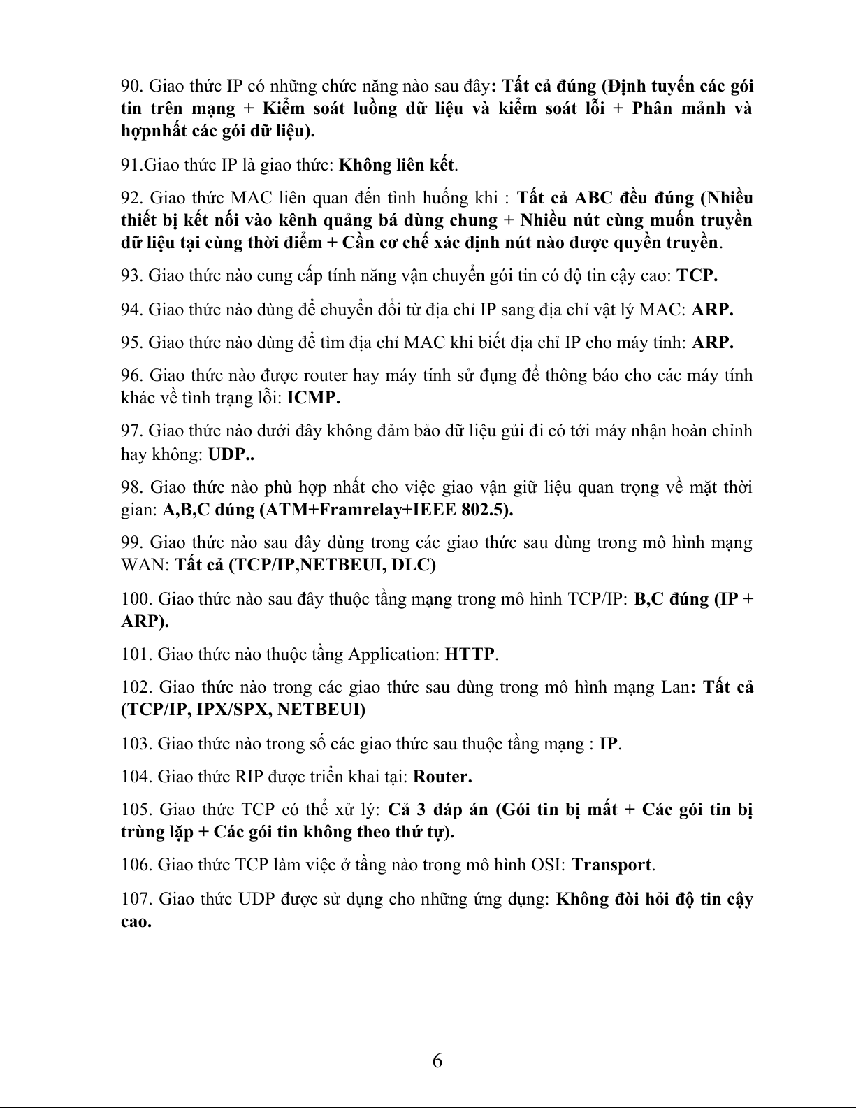 6. Các cặp tín hiệu dùng để truyền và nhận dữ liệu của Topology 100 Base-TX là: 1,3 và 2,6.