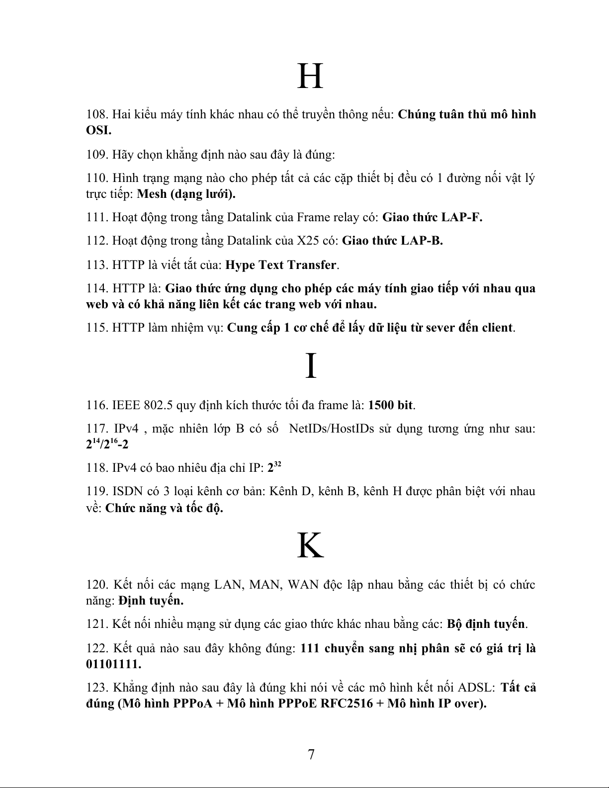 7. Các chuẩn Jpeg, TIFF, ASCII, EBCDIC do tầng nào của mô hình OSI định nghĩa: Aplication.