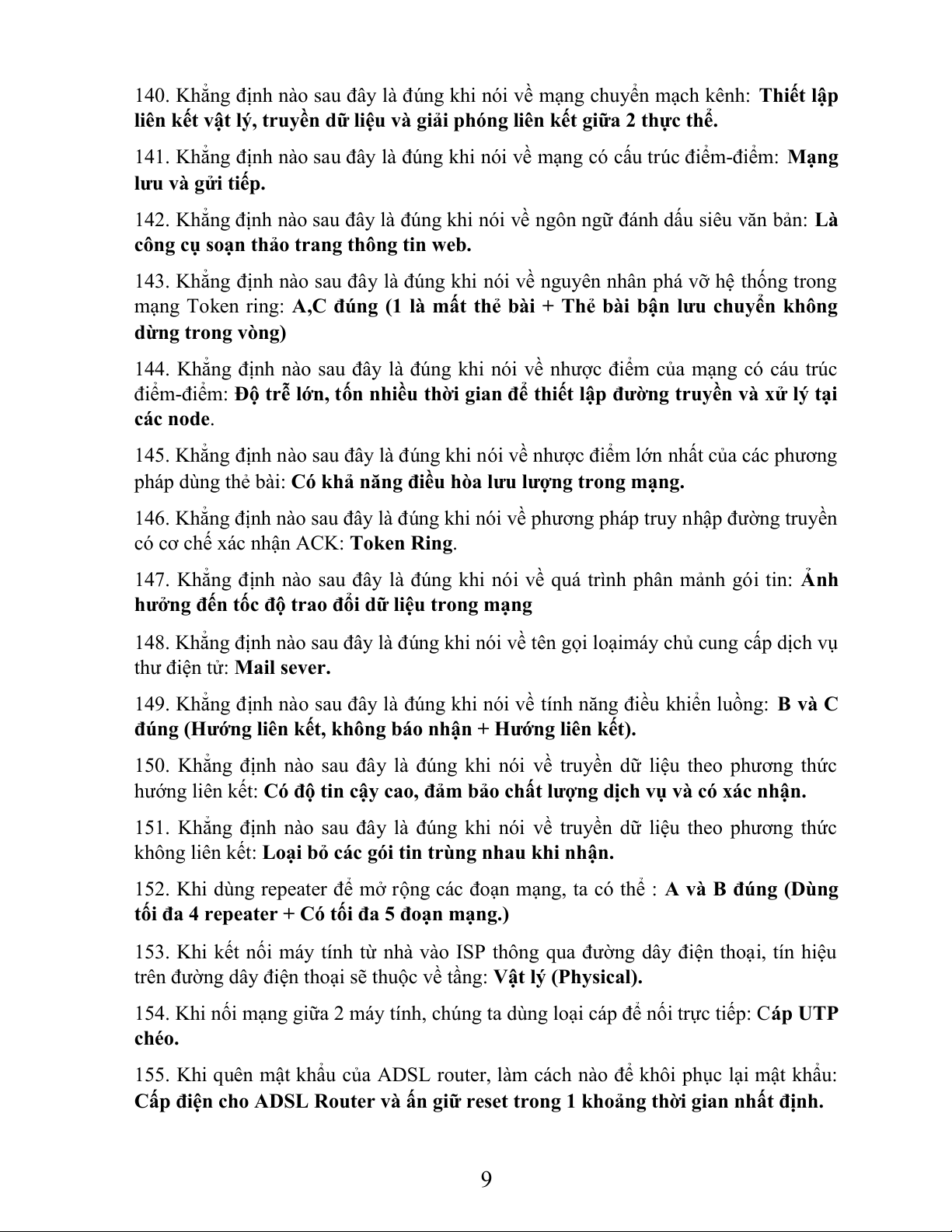 45. Công nghệ mạng LAN sử dụng phổ biến hiện nay là: Token Ring.