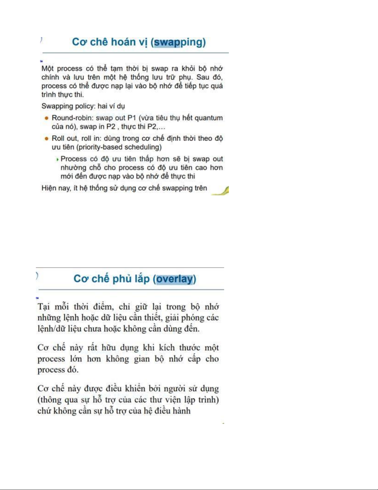 tình trạng thrashing . Cơ chế Swap E. Lập lịch cho BXL