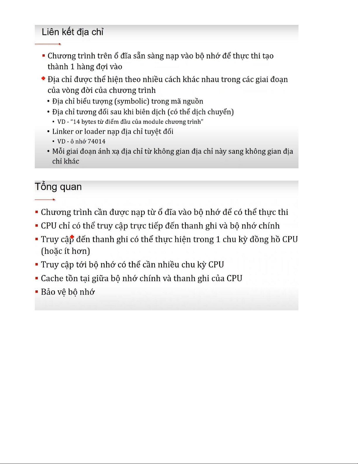 5) Tổ chức bộ nhớ kết hợp trang, đoạn 6) Các chiến lược loại bỏ trang bộ nhớ