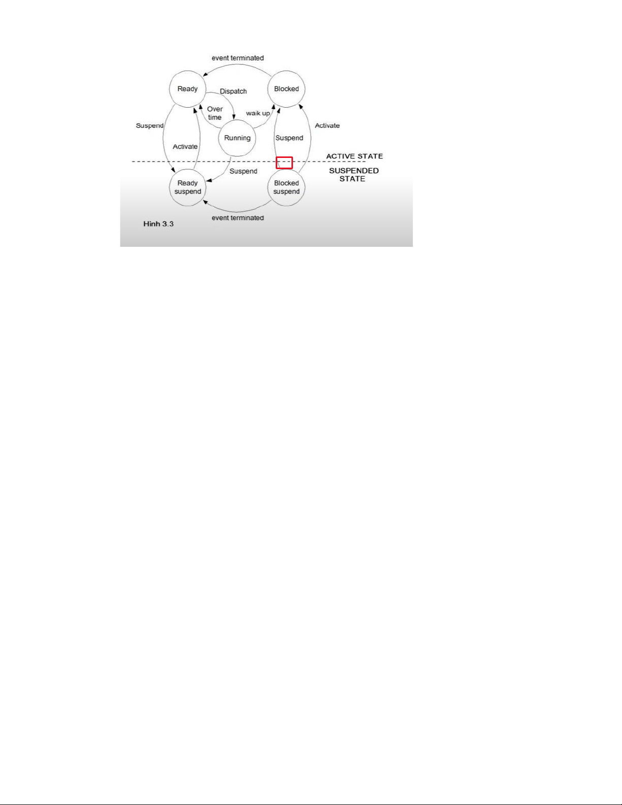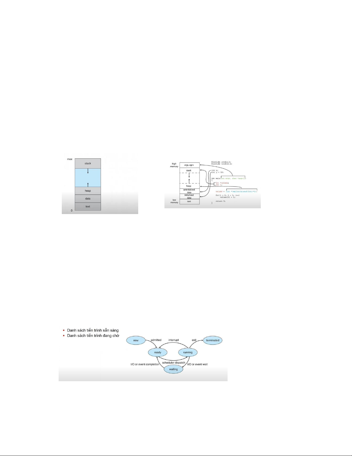 +Waiting/ Blocked: Tiến trình chờ sự kiện để thực thi hoặc chờ cấp phát tài nguyên(thêm)